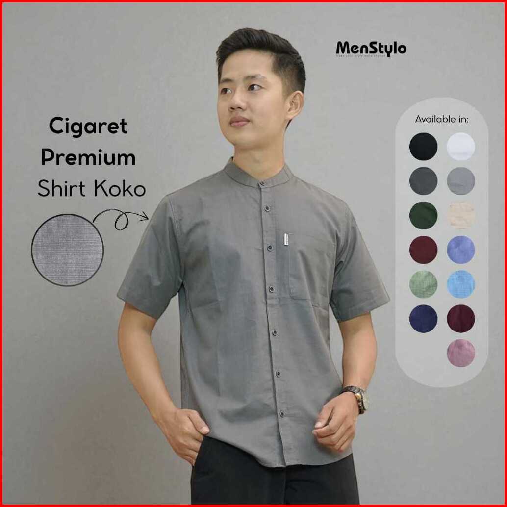 Kemeja Koko Putih Premium Bc-shop Cigaret Lengan Pendek