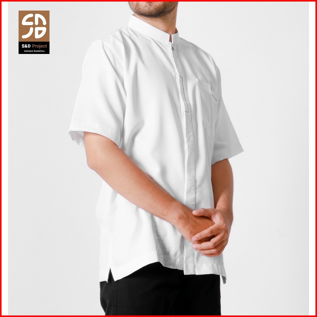 S D Project Baju Koko Muslim Razin Bahan Toyobo Warna Putih M-xl Untuk Pria Dewasa Lengan Pendek