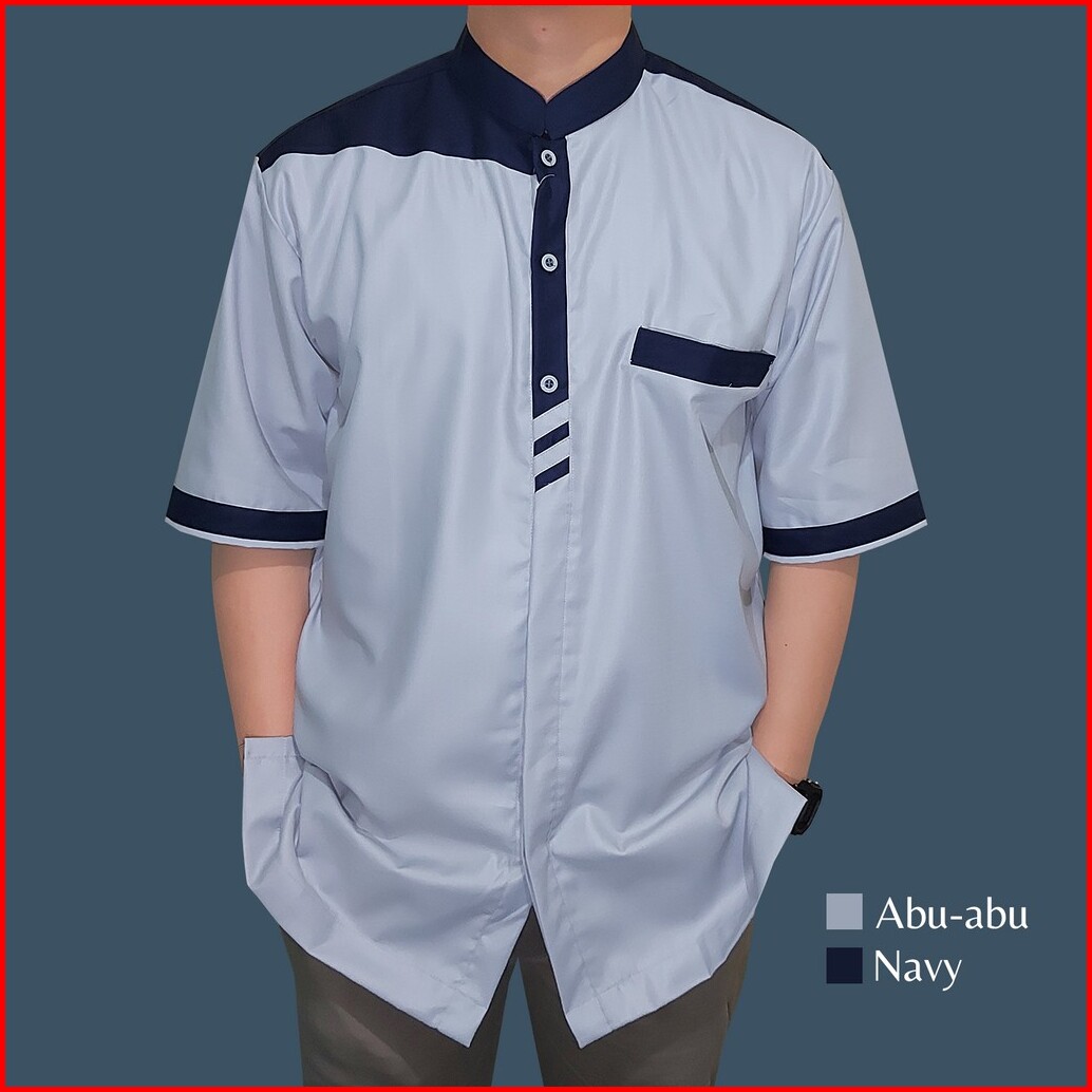 S D Project Baju Koko Katun Toyobo Polos Lengan Pendek Ukuran S M L Xl Xxl 3xl 4xl - Abu Navy