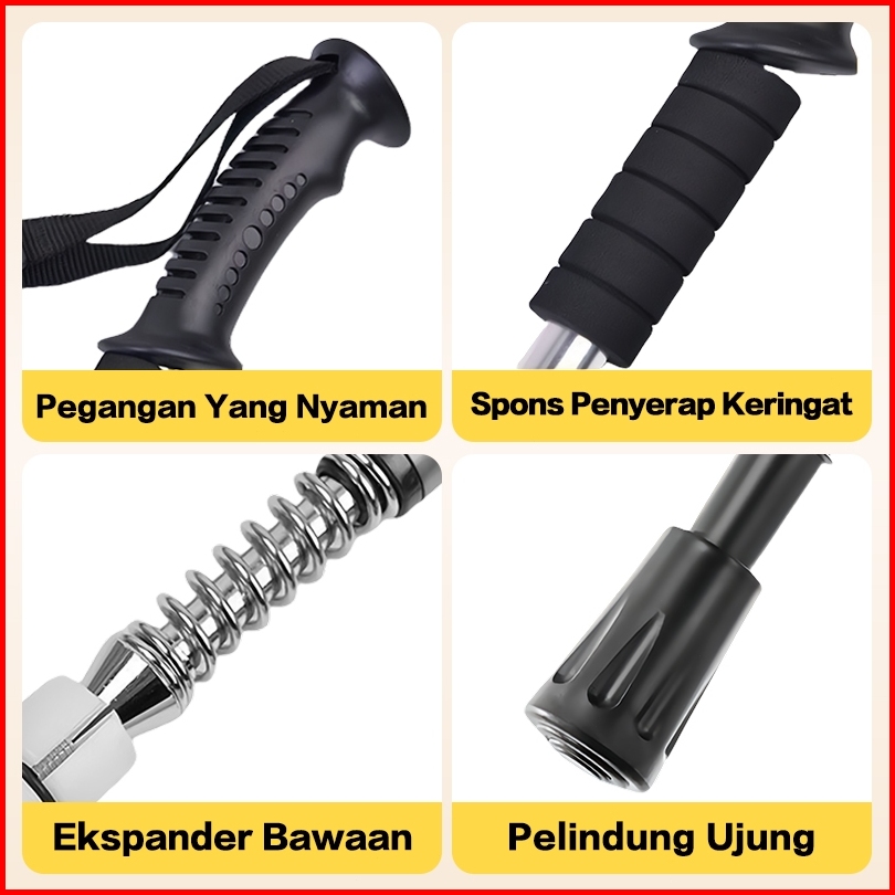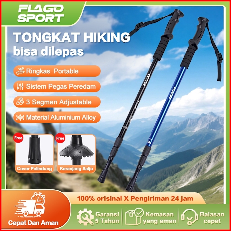 Flago Sport Tracking Pole Lipat Tongkat Gunung Trekking Hiking Dapat Diatur Sesuka Hati 65-135cm