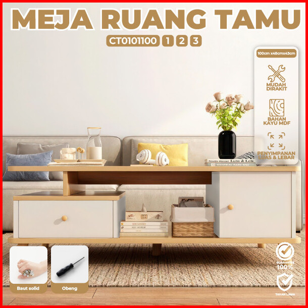 Home Dekoration Meja Tamu Minimalis - Meja Kopi Multifungsi Dengan Laci Penyimpanan Serbaguna