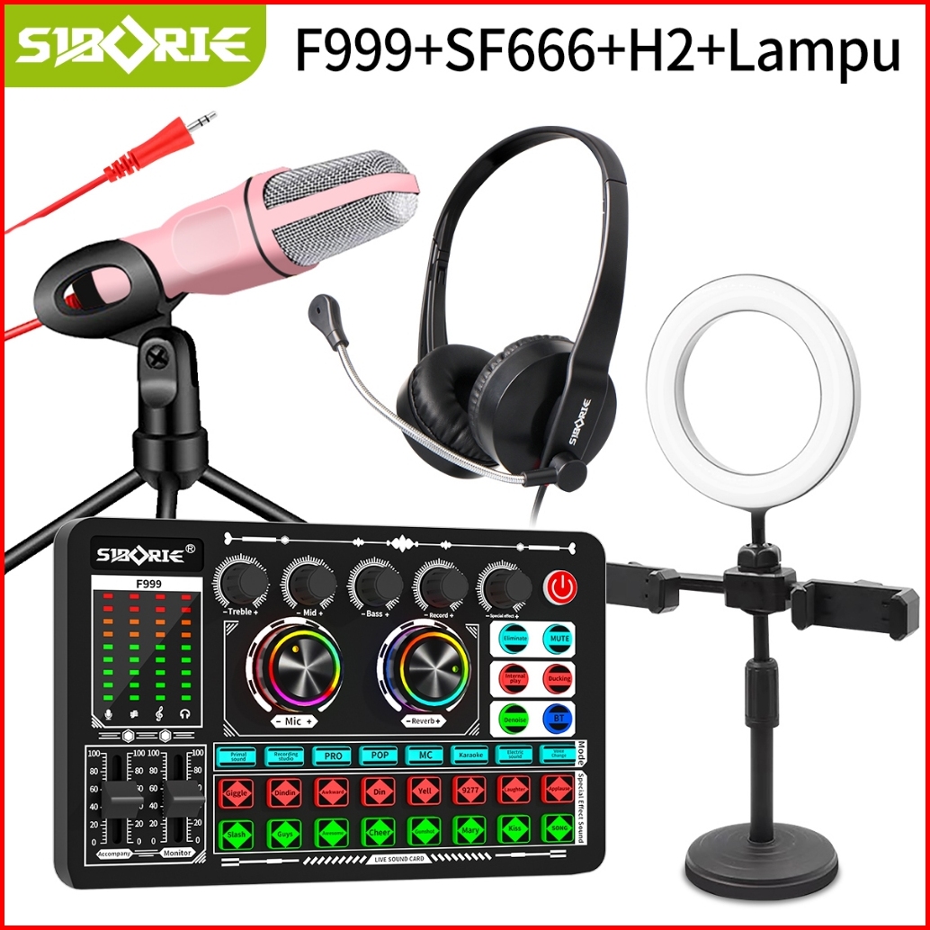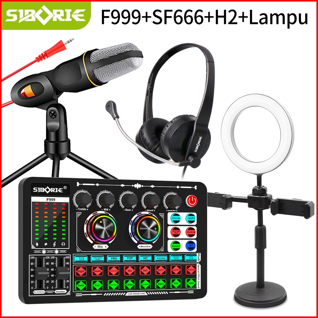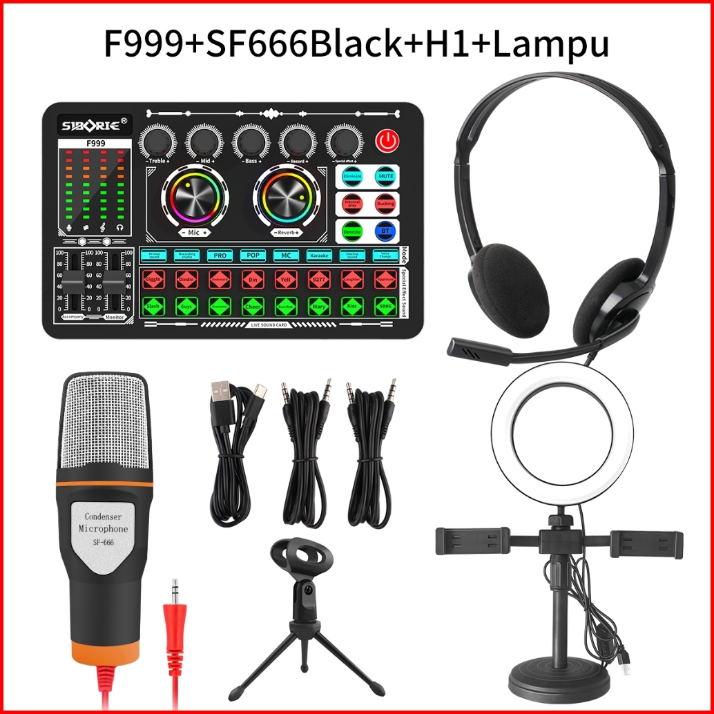 Siborie F999 Sf666 H1 H2 Lampu Paket Komplit Streaming Of All Kit Eqipment Sound Card Microphone Headphone Lampu Set Sia