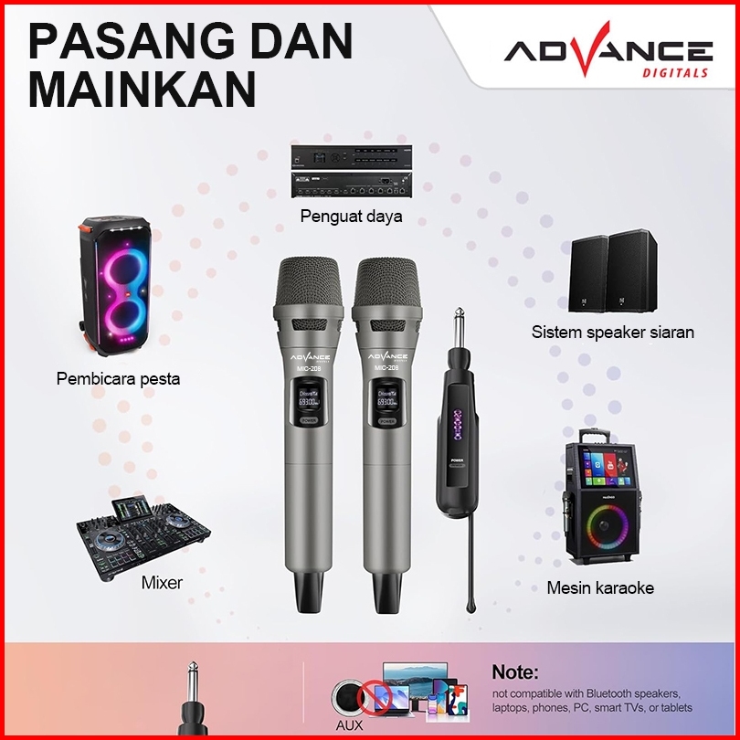 Advance Microphone Wireless Mic-209 Uhf Wireless Microphone Mic Wireless Karaoke Mic Karaoke Suara Jernih Microfon Wirel