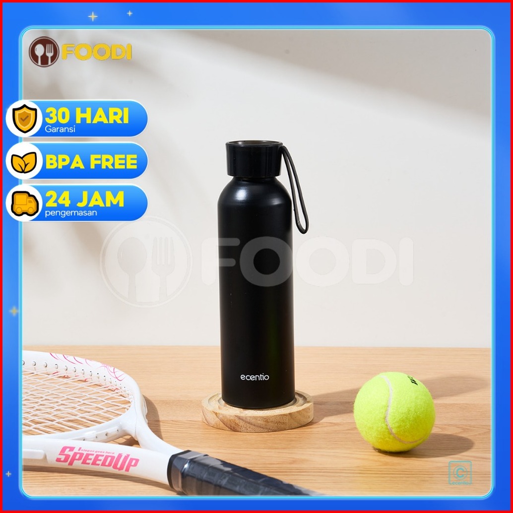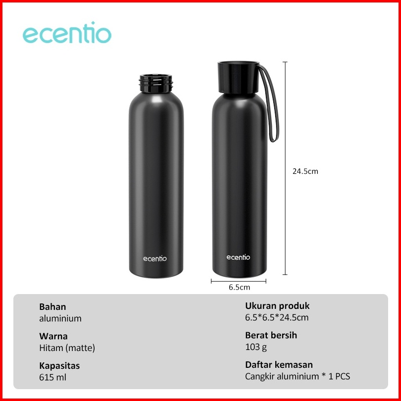 Ecentio Botol Minum Tumbler Olahraga Sport Tumbler Botol Air 650ml Anti Tumpah Black Aluminum Bottle
