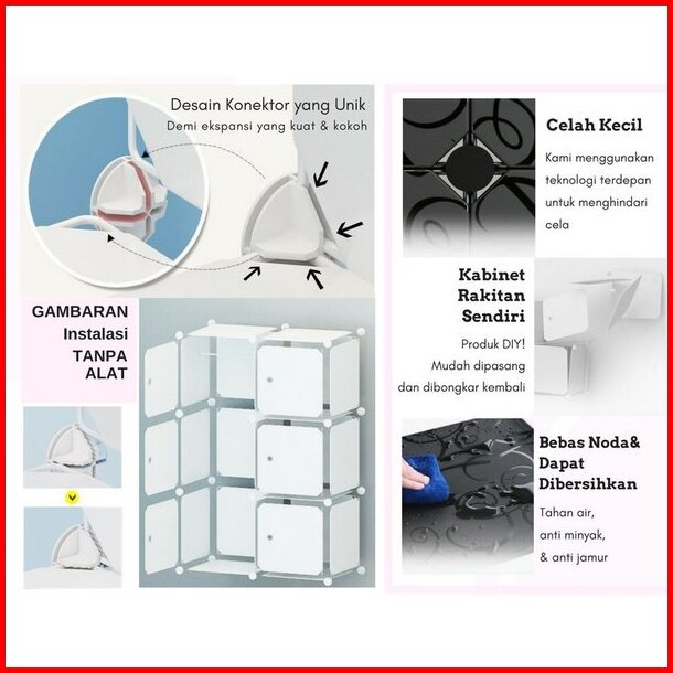 Home Dekoration Lemari Pakaian Plastik 6 Pintu Lemari Baju Portable
