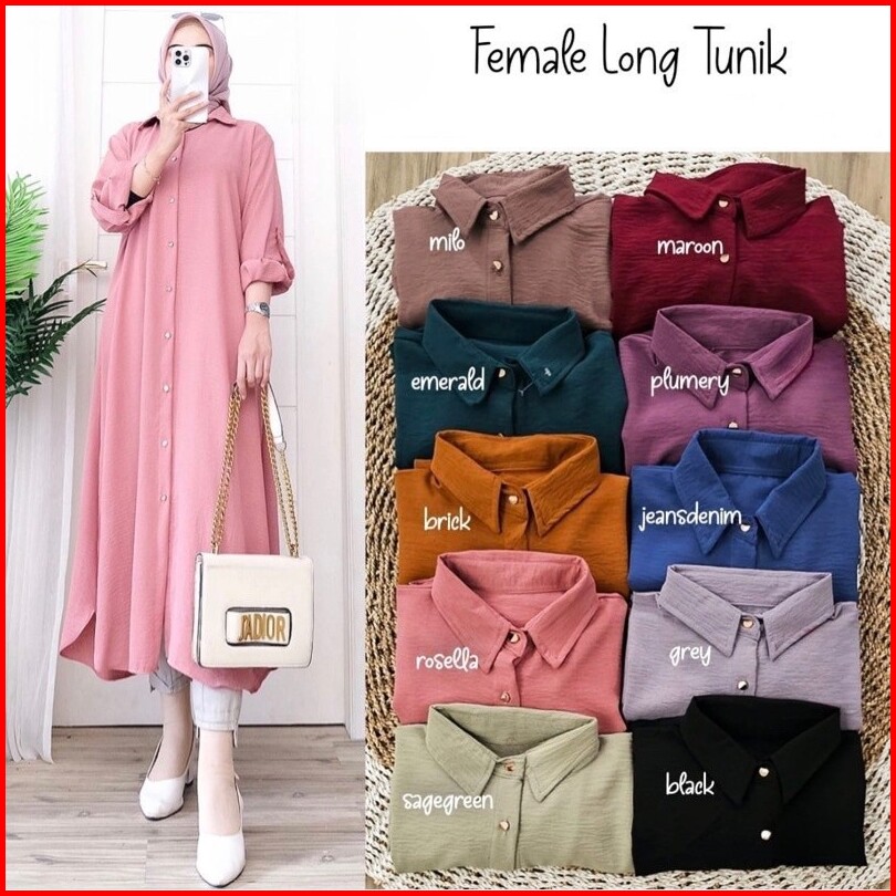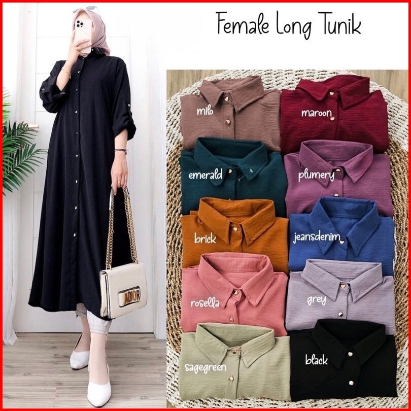 Geneaby - Female Long Tunik Wanita Bahan Crinkle Airflow Ld 110 Busui Friendly