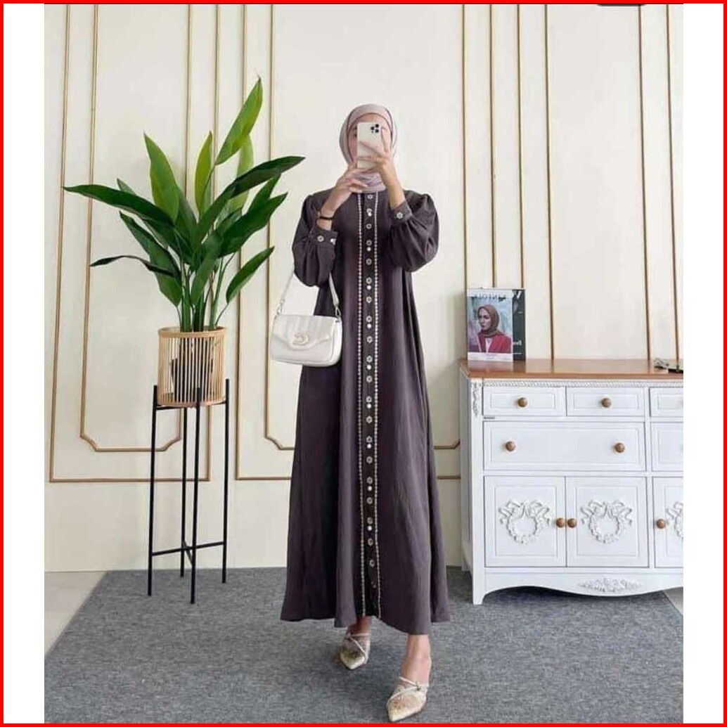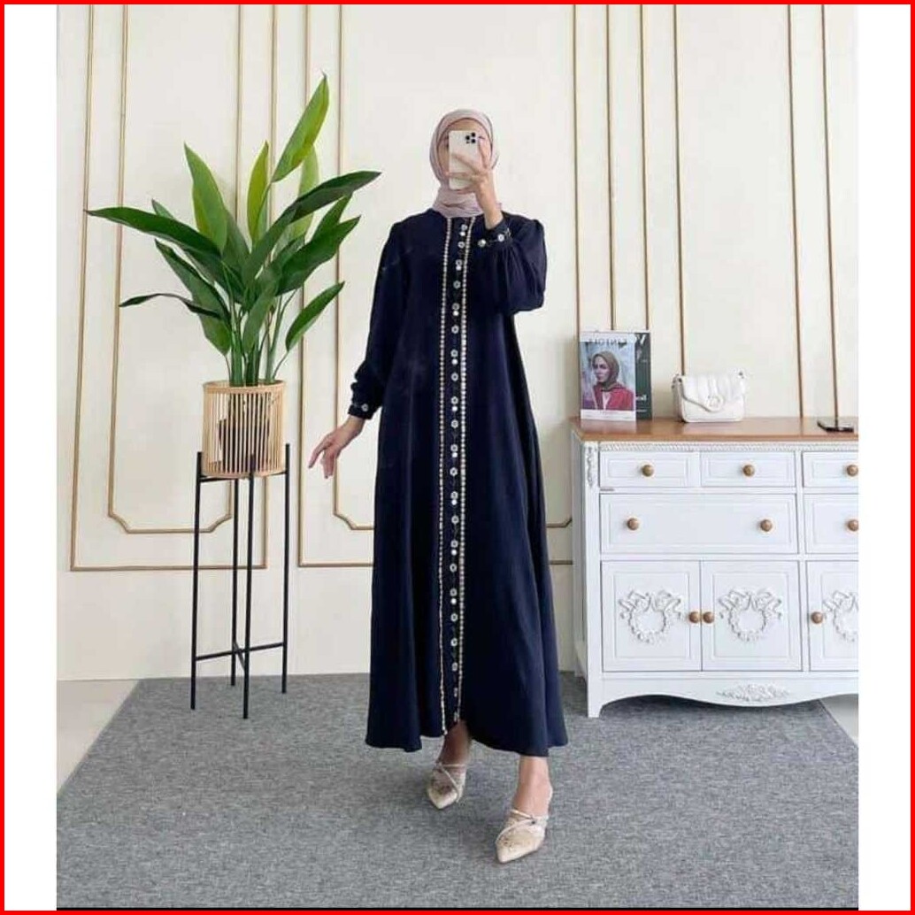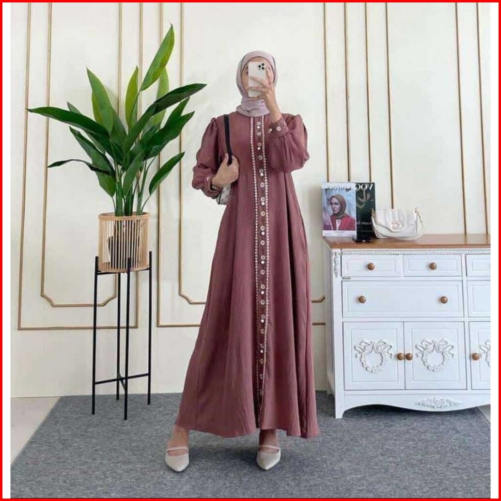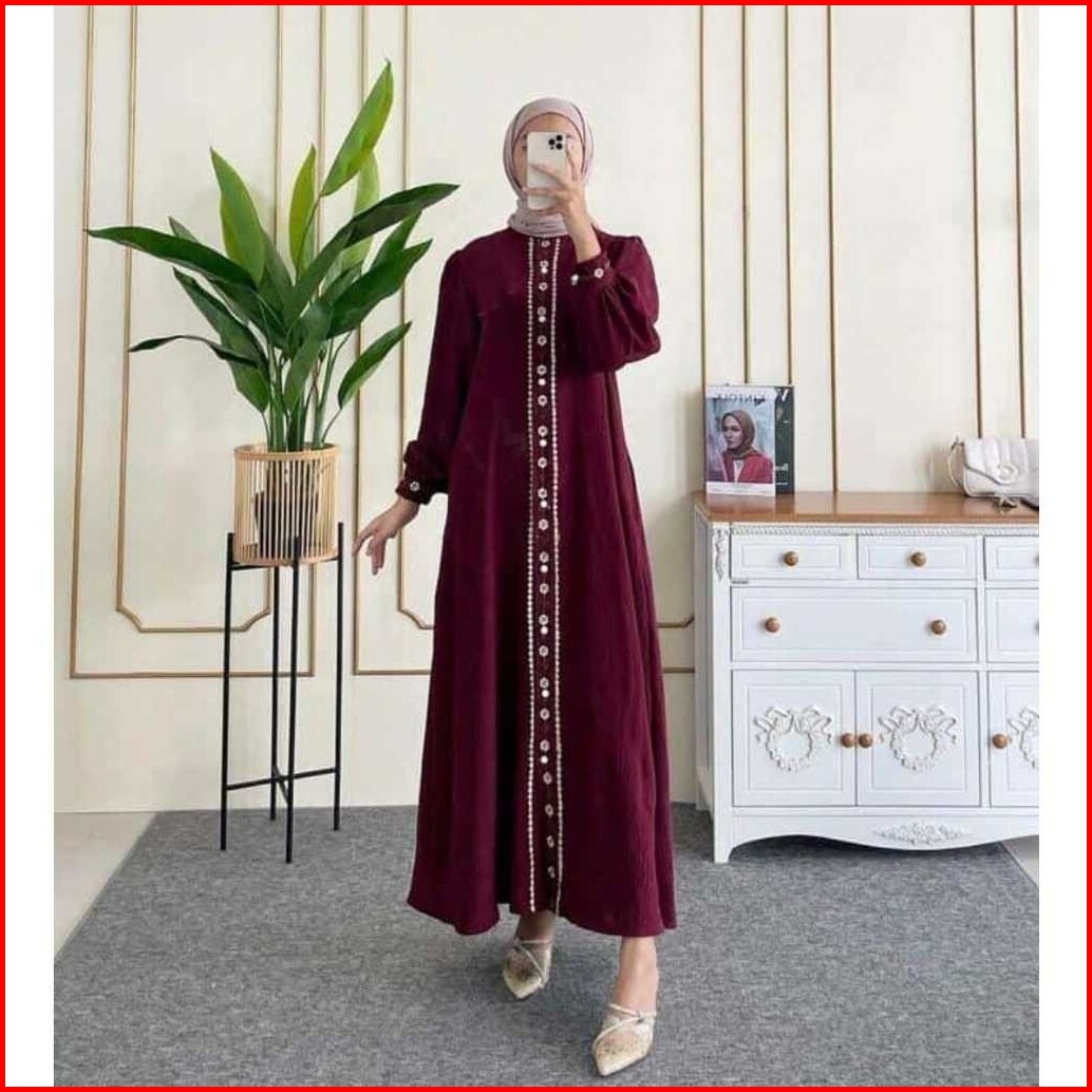 Geneaby - Calya Dress Gamis Wanita Muslimah Lebaran Bahan Crinkle Airflow Bordir Embodery