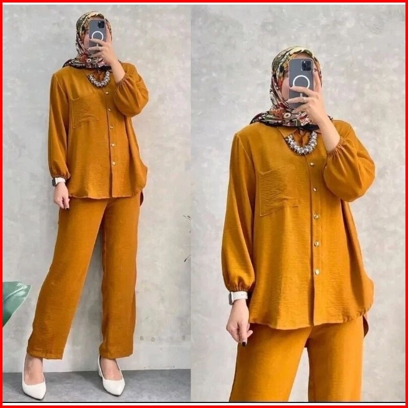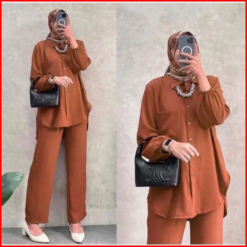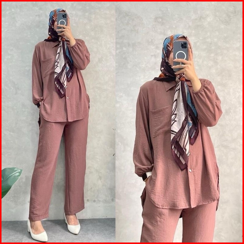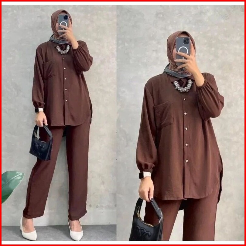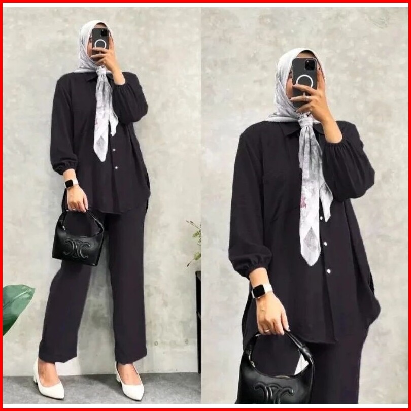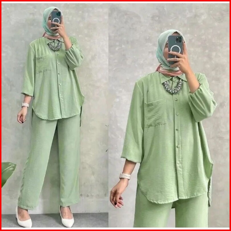 Geneaby - Zema One Set Wanita Amanda Setelan Wanita Bahan Crinkle Airflow