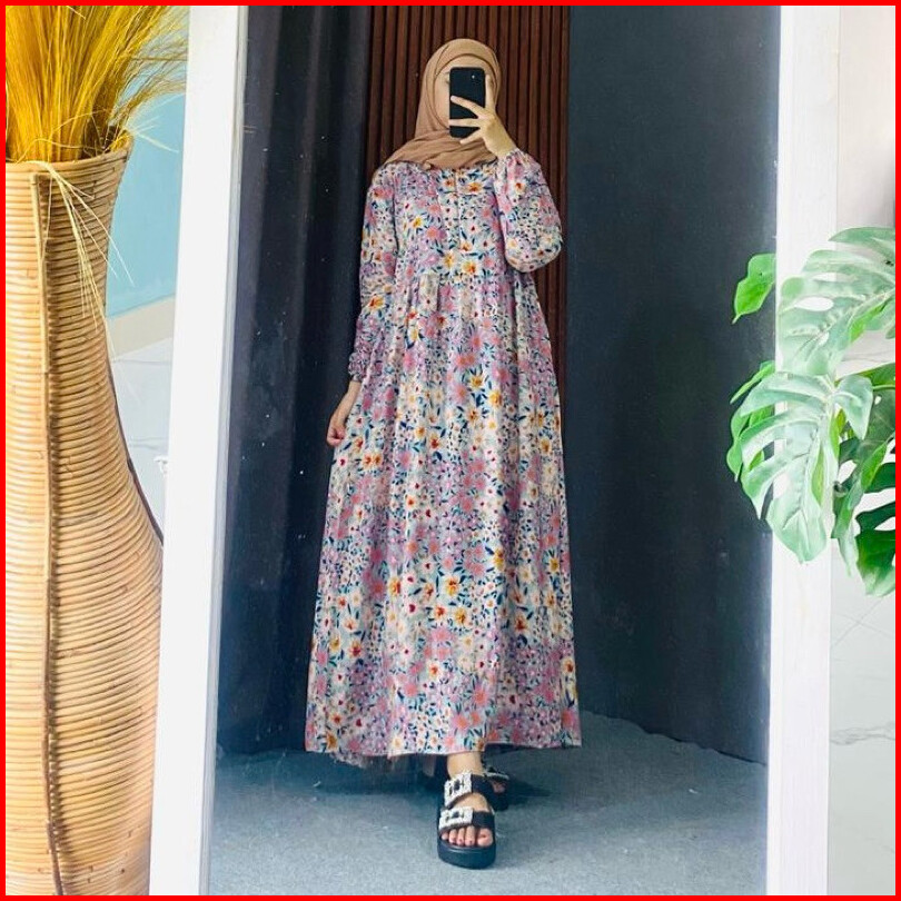 Geneaby - Lyodra Wiyola Midi Dress Rayon Motif Resleting Aktif