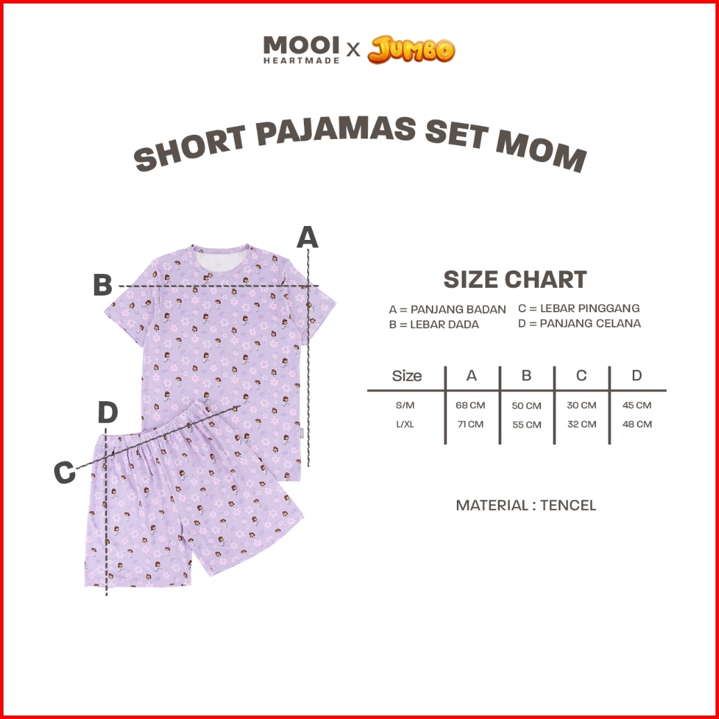 Mooi X Jumbo Piyama Dewasa Setelan Tencel Short Pajamas Adult