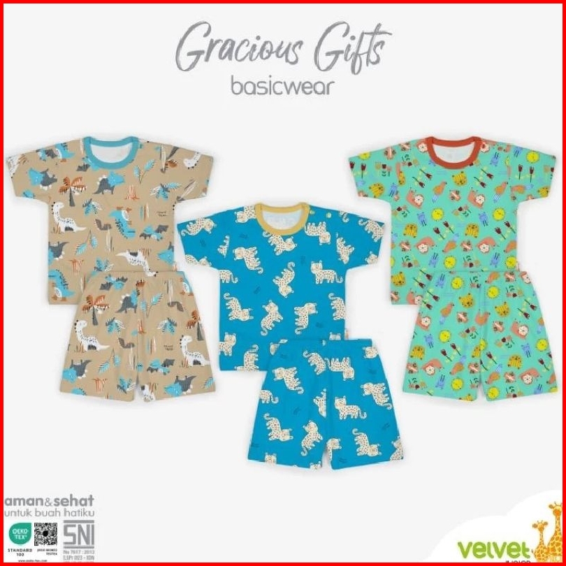 3 Pcs Setelan Velvet Junior Oblong Pendek Bayi Uk S M L Xl Xxl Sni