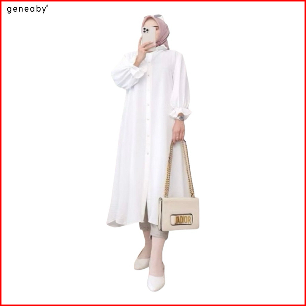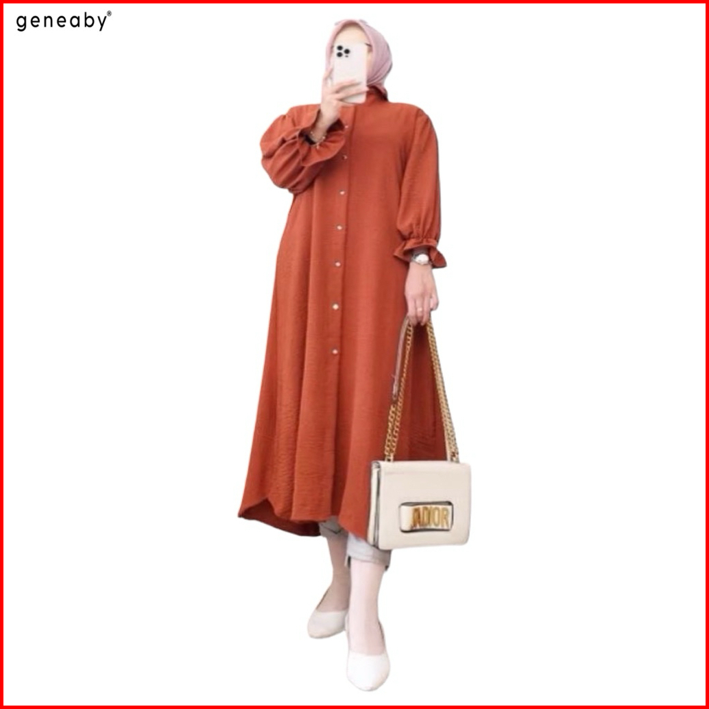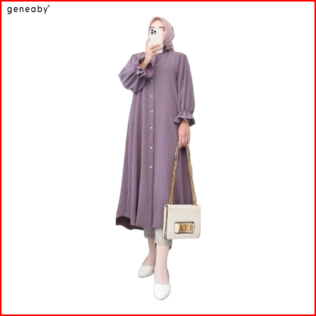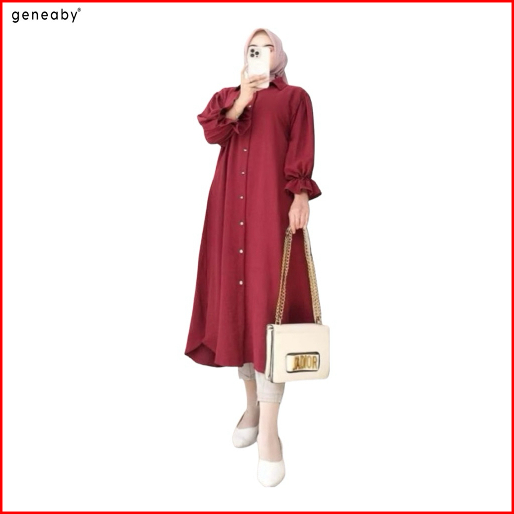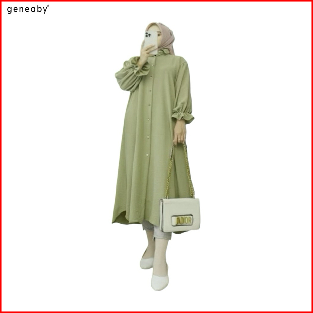 Geneaby - Mahalini Long Tunik Atasan Wanita Bahan Crinkle Airflow Busui Friendly