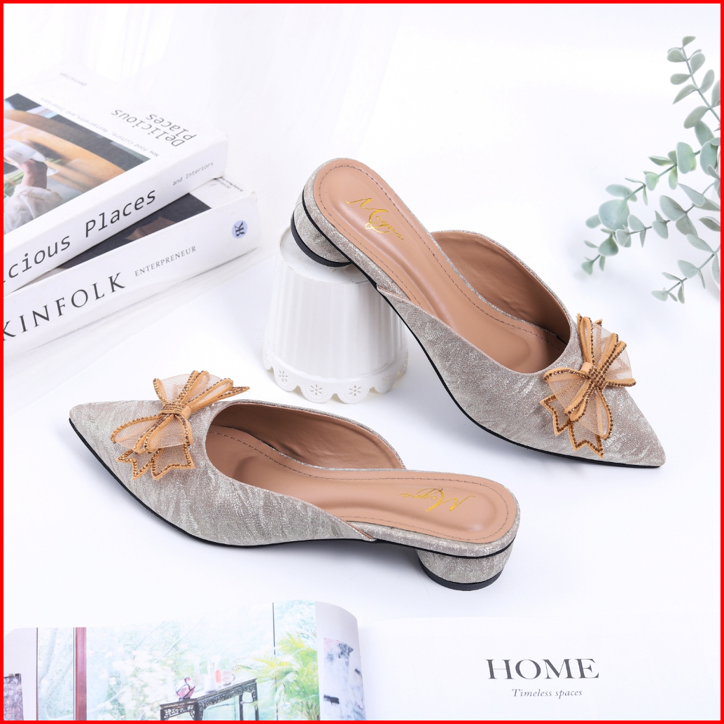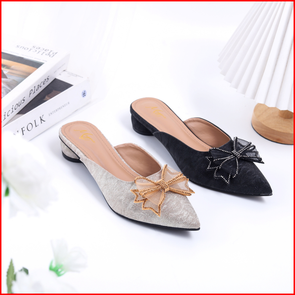 Mayra - Biana Sepatu Mules Wanita Pesta 2cm Pita Kupu Kupu Depan
