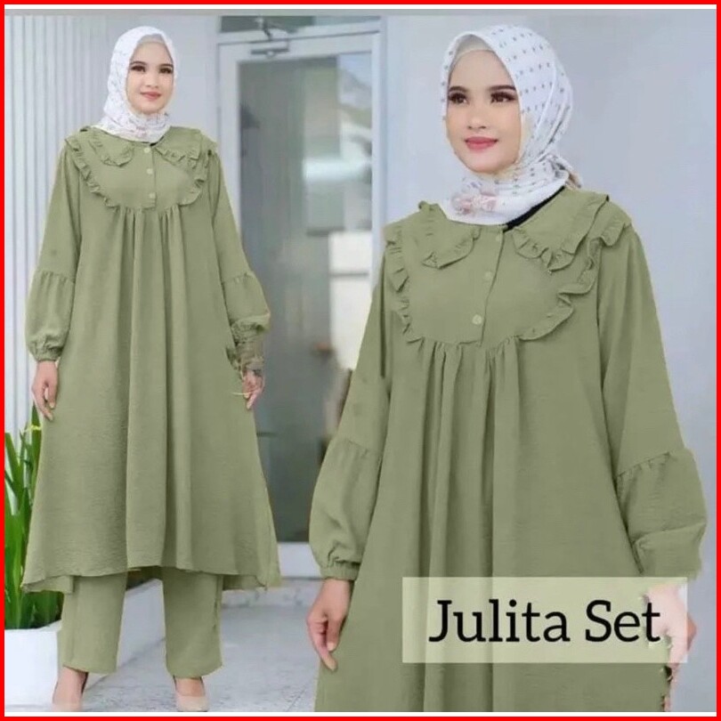 Geneaby - Julita Set Baju Wanita Setelan Jumbo Size Xl Xxl Terbaru Muslim Wanita Terbaru Bahan Cringkle Setelan Long Tun