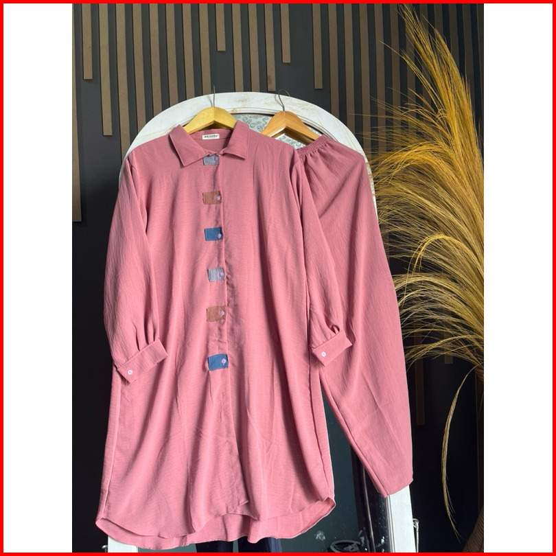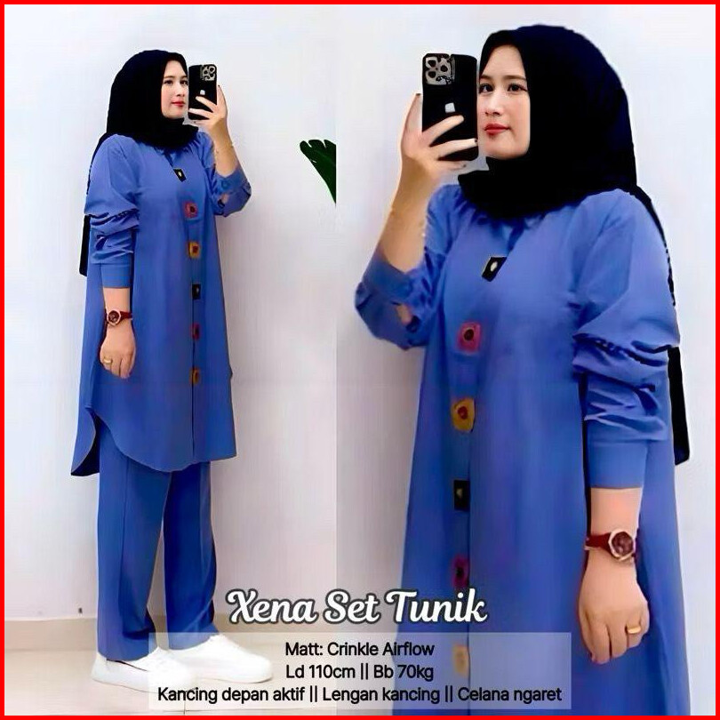 Geneaby - Xena Set Tunik Wanita Size Xl Xxl Setelan Bahan Crinkle Airflow