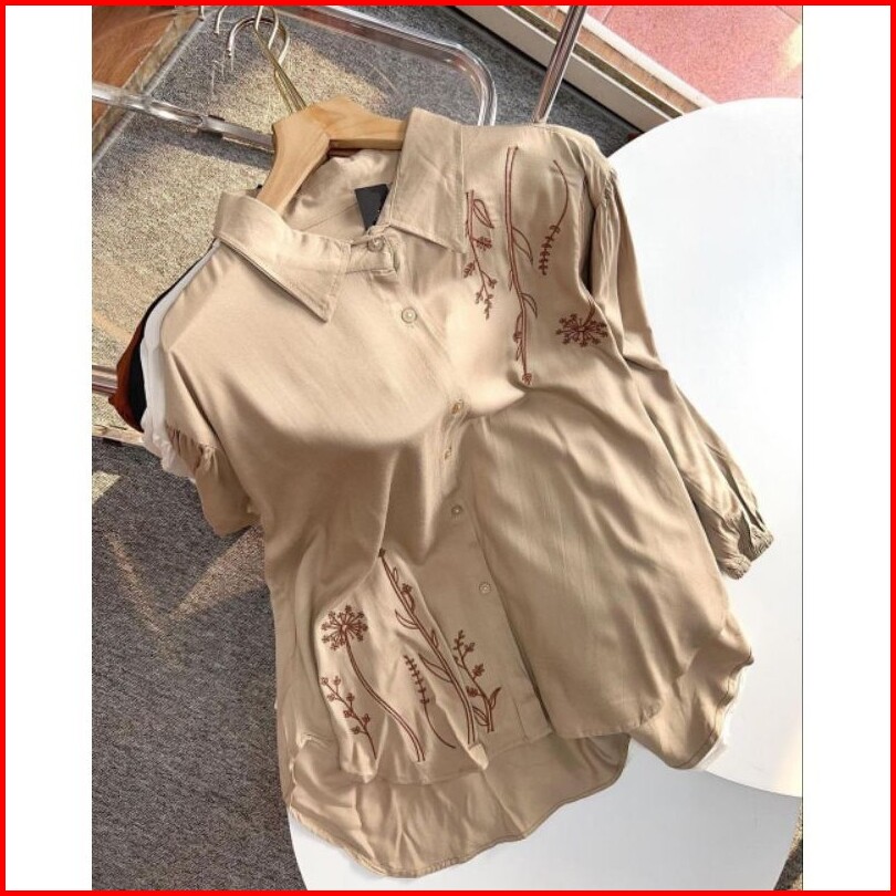 Geneaby - Reinka Blouse Kemeja Atasan Wanita Bahan Rayon Twill Emboidery Bordir