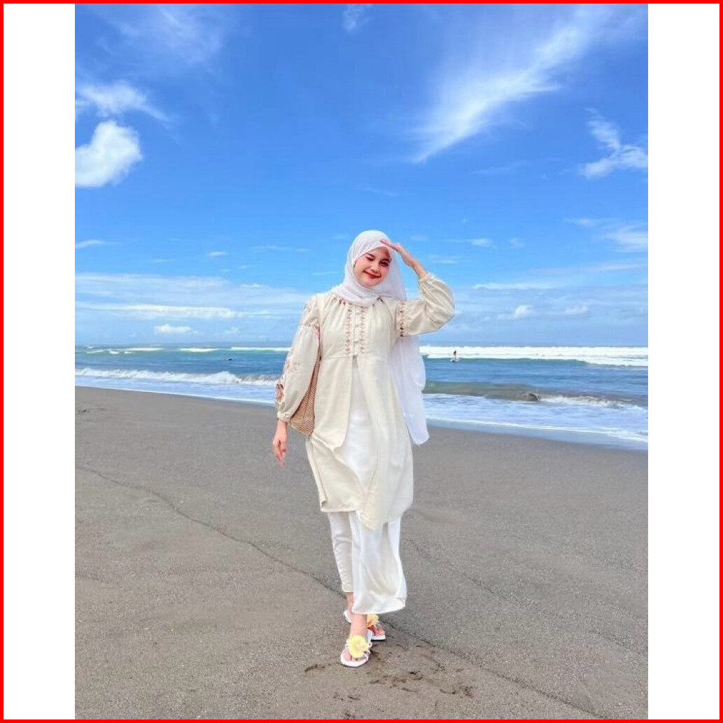 Geneaby - Lingga Tunik Bordir Atasan Wanita Bahan Polo Linen