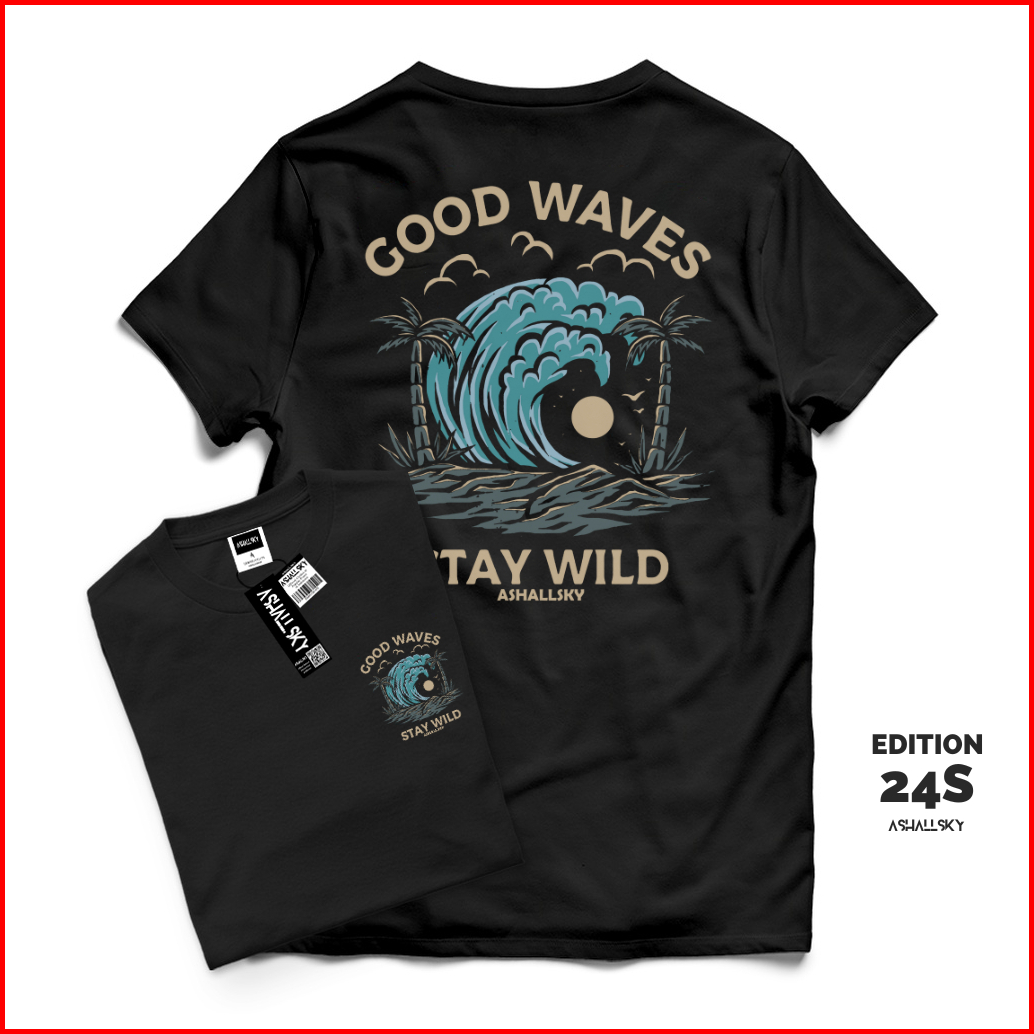 Ashall.sky Baju Kaos Pria Wanita Surfing Good Waves Hitam Oblong Lengan Pendek Katun Combet 24s