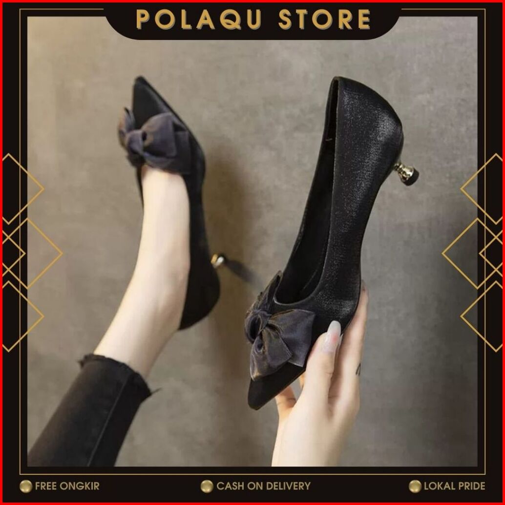 Polaqu Store Sepatu Pantople Heels Hak Tinggi 3cm Mira Variasi Pita Kasual Ootd Formal Wisuda Eg 025