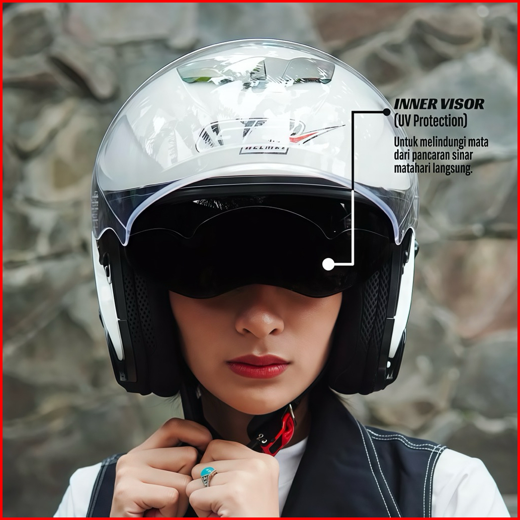 Helm G2 Optimax Solid Original Helem Half Face Double Visor Sni