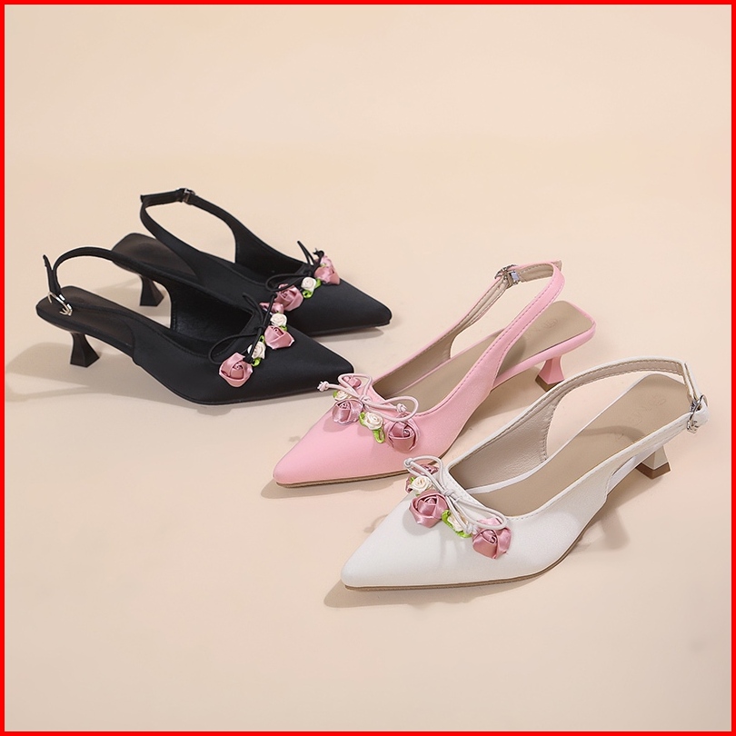 Heels Pesta Wanita Mewah 3cm Sepatu Flowery Wisuda Kondangan 1006