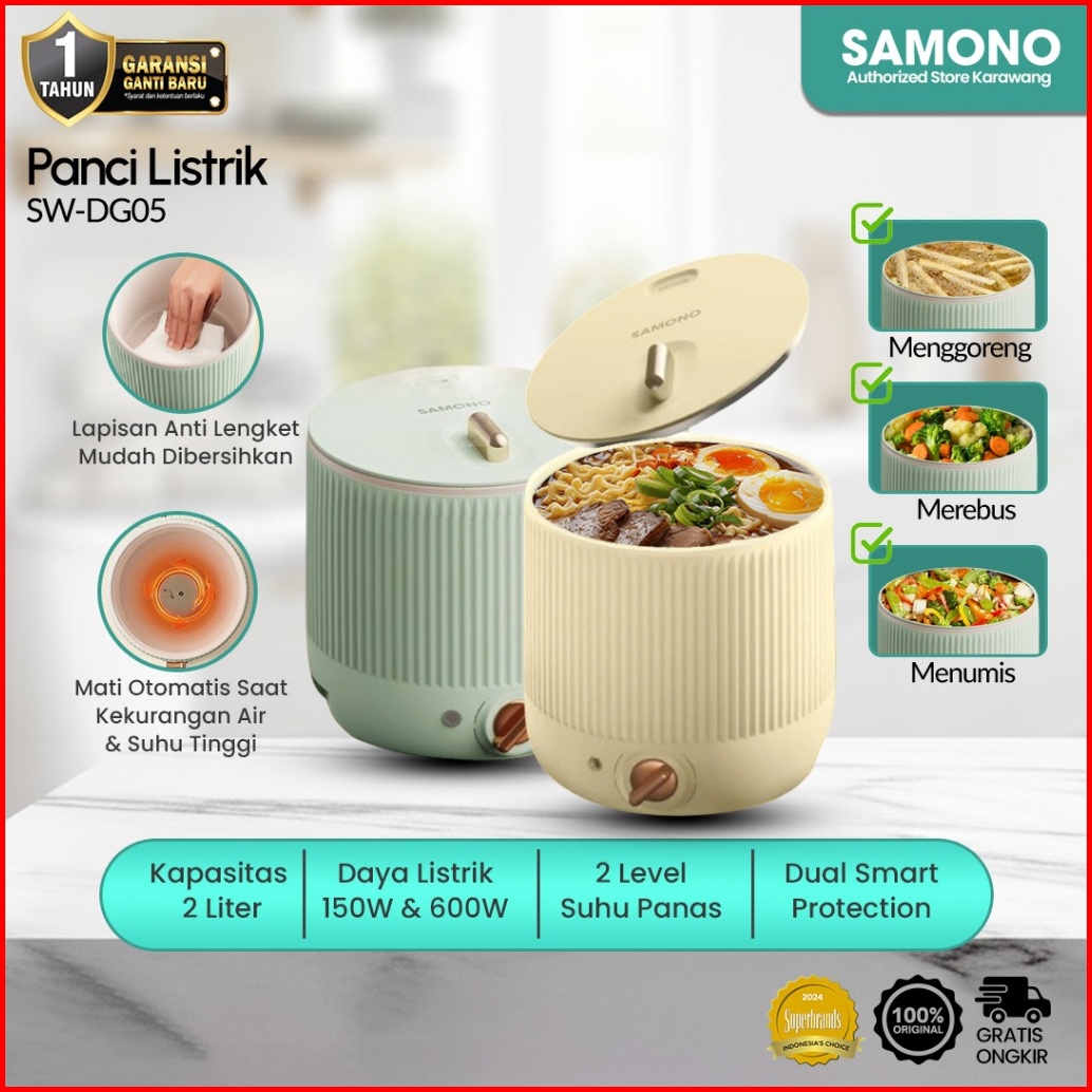 Samono Panci Listrik Keramik Serbaguna Mini Slow Cooker Serbaguna Garansi Resmi 1 Tahun Sw-dg05