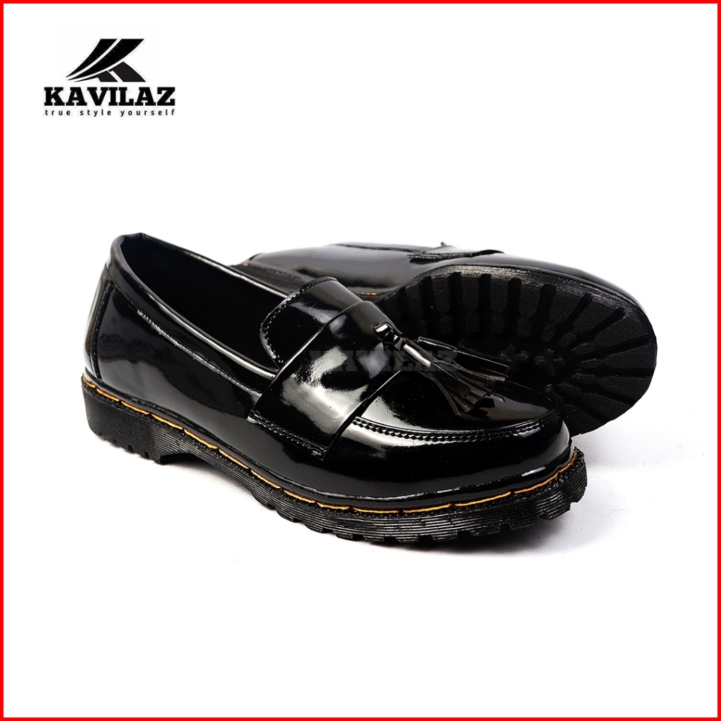 Kavilaz True Style Yourself Sepatu Wanita Flat Loafer Formal Docmart Black Glossy Kode Z15
