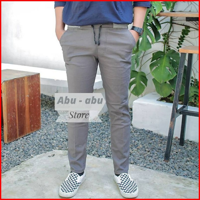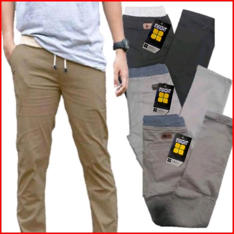Celana Chino Cino Chinos Cowok Panjang Chino Karet Pinggang Rip Chinos Kolor