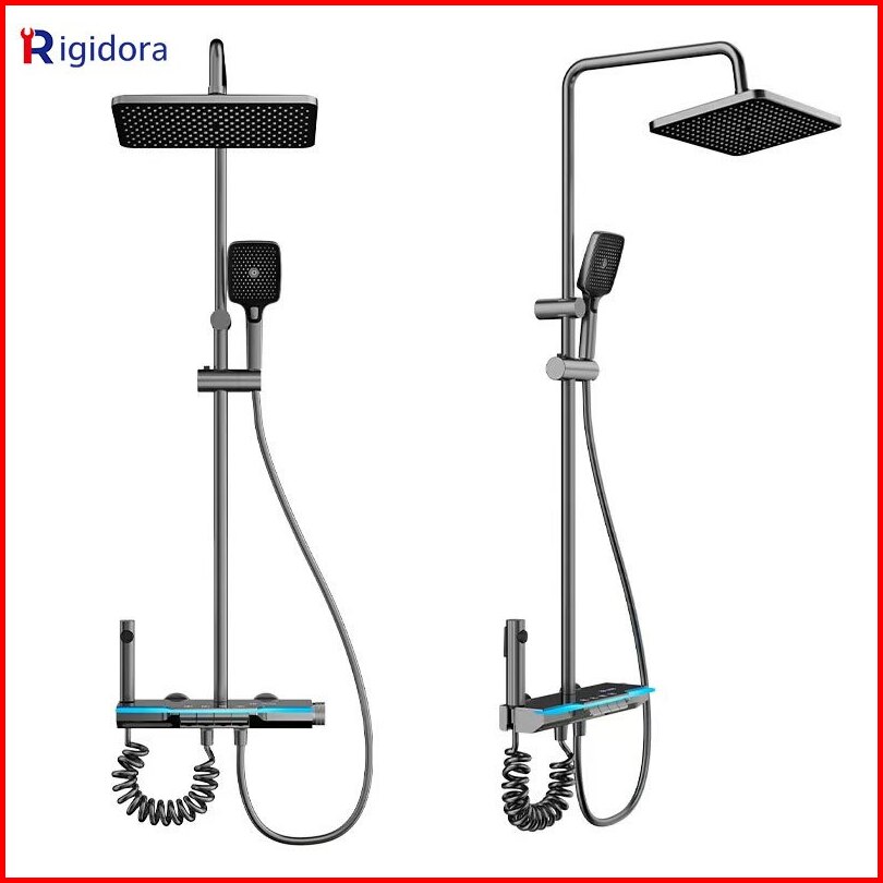 Rigidora Shower Kamar Mandi Full Set Panas Dingin Cahaya Sekitar Tampilan Digital Desain Tuts Piano Shower Kamar Mandi F
