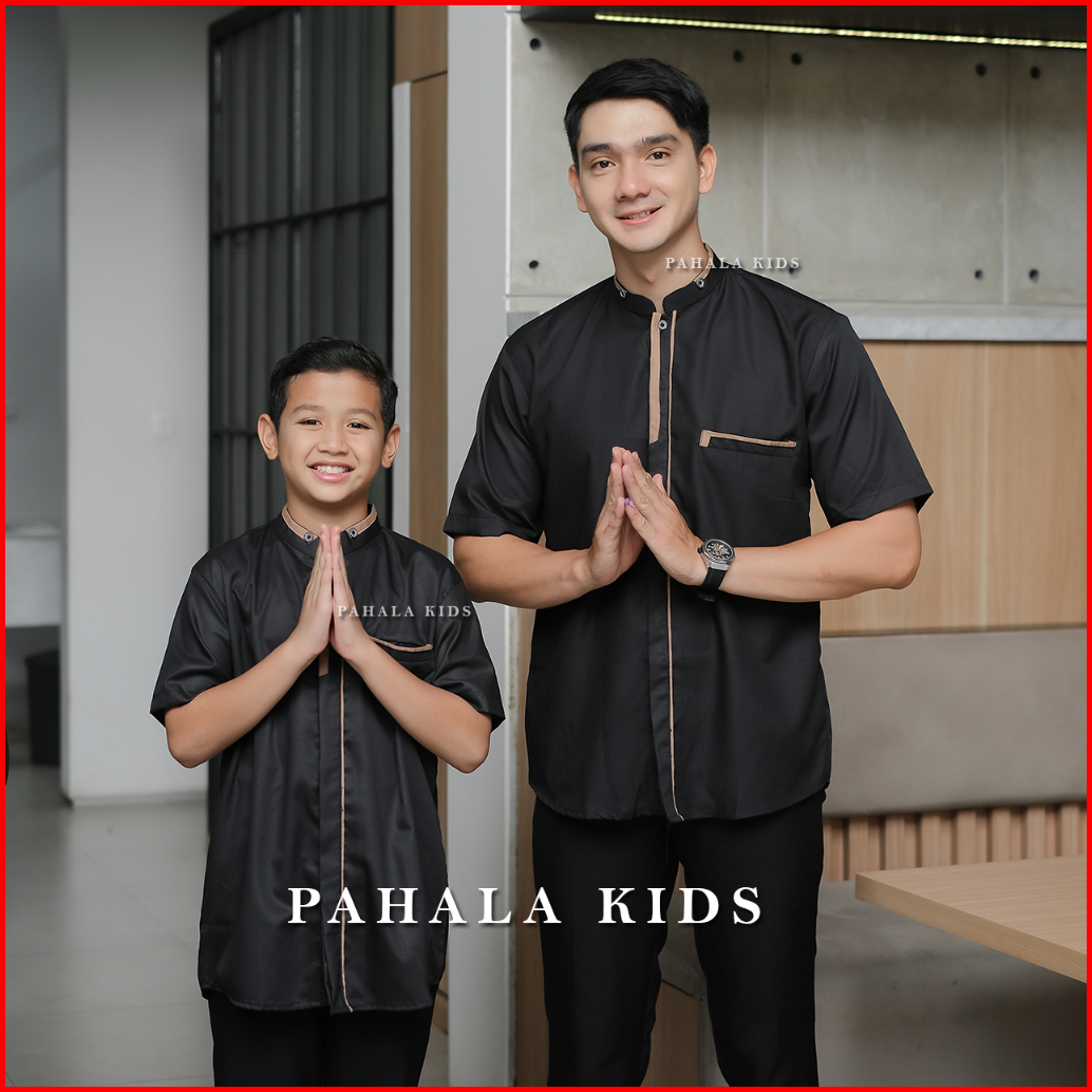 Baju Koko Couple Ayah Anak Laki Laki Lengan Pendek Bahan Toyobo Import Terbaru 2025 Warna Mahogany