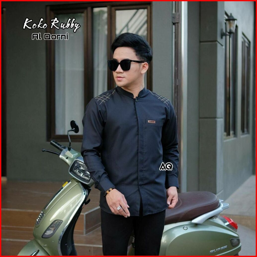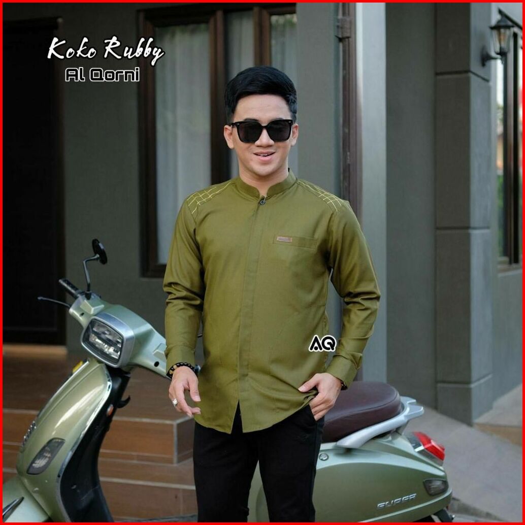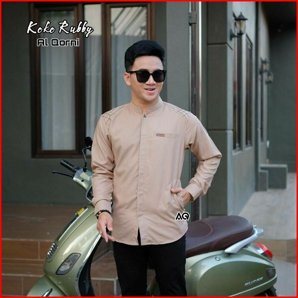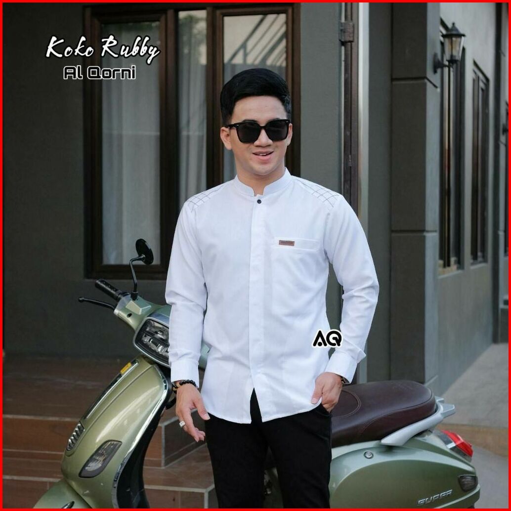 Baju Koko Polos Putih Pria Lengan Panjang Motif Rubby