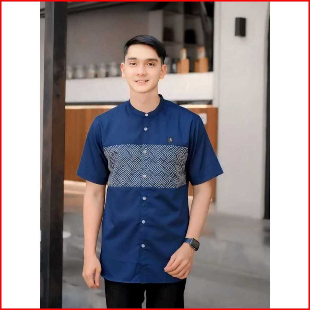 Baju Koko Pria Lengan Pendek Katun Kobata Koko Pria Casual Baju Muslim Pria Dewasa Katun Mikro