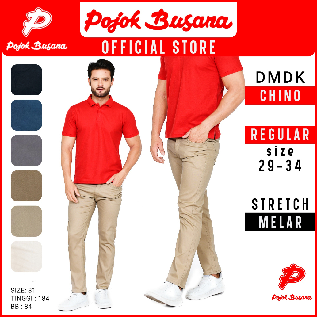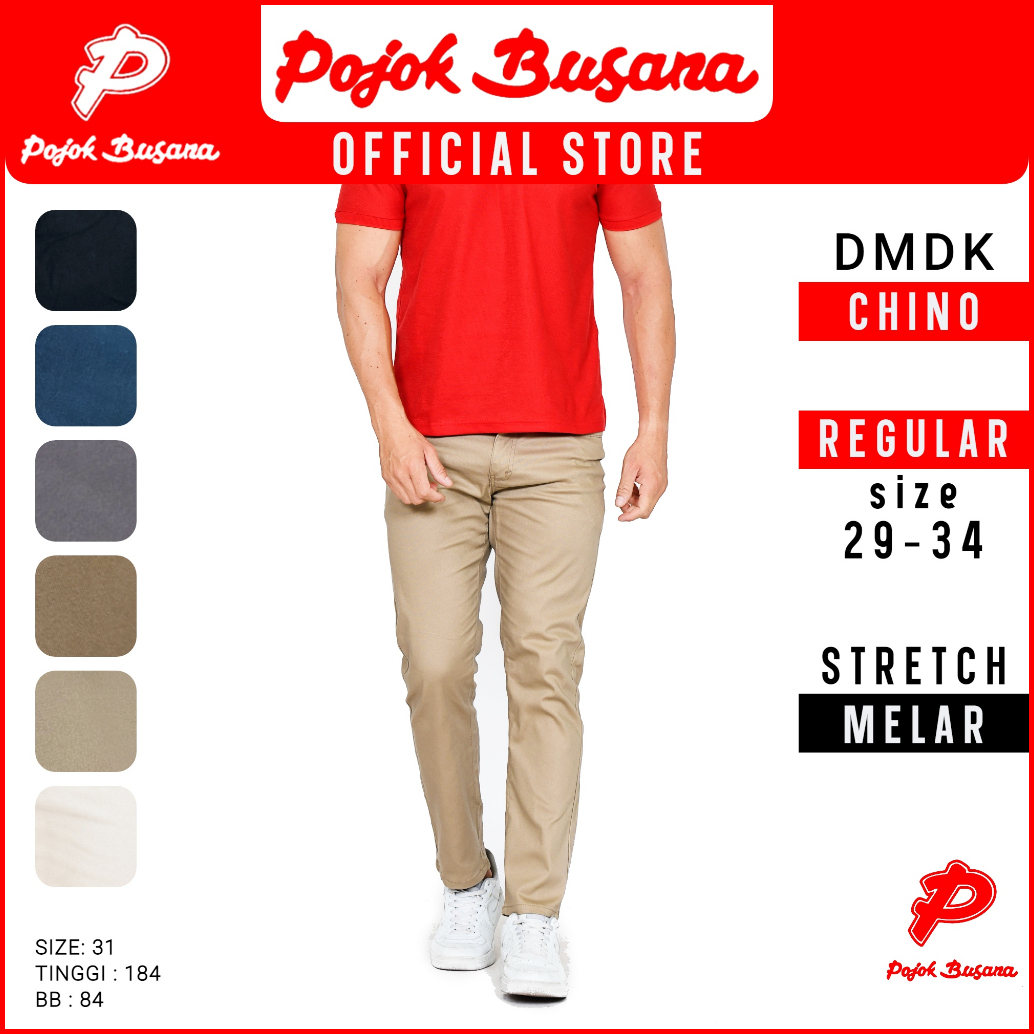Pojok Busana Dmdk Chino Pants Cotton Premium Stretch Pria - Celana Panjang Cowok Kerja Kasual Hitam - Reguler Fit