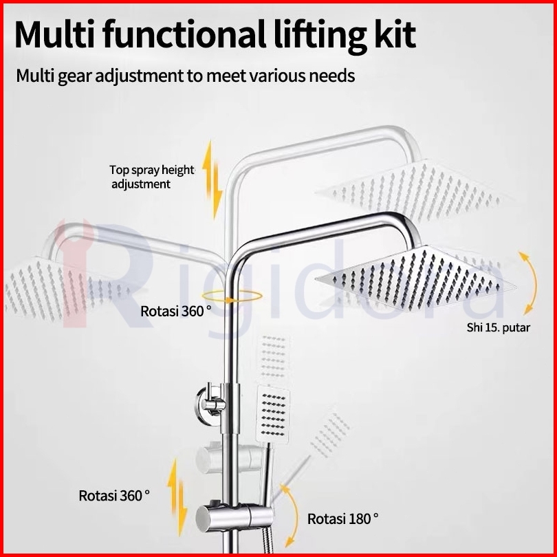 Rigidora Sus304 Shower Kamar Mandi Set Wall Mounted Shower Paket Lengkap Perak