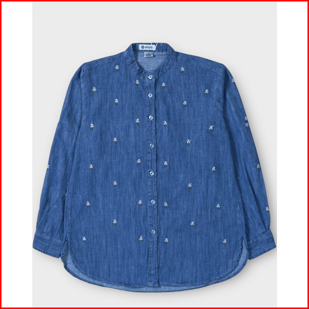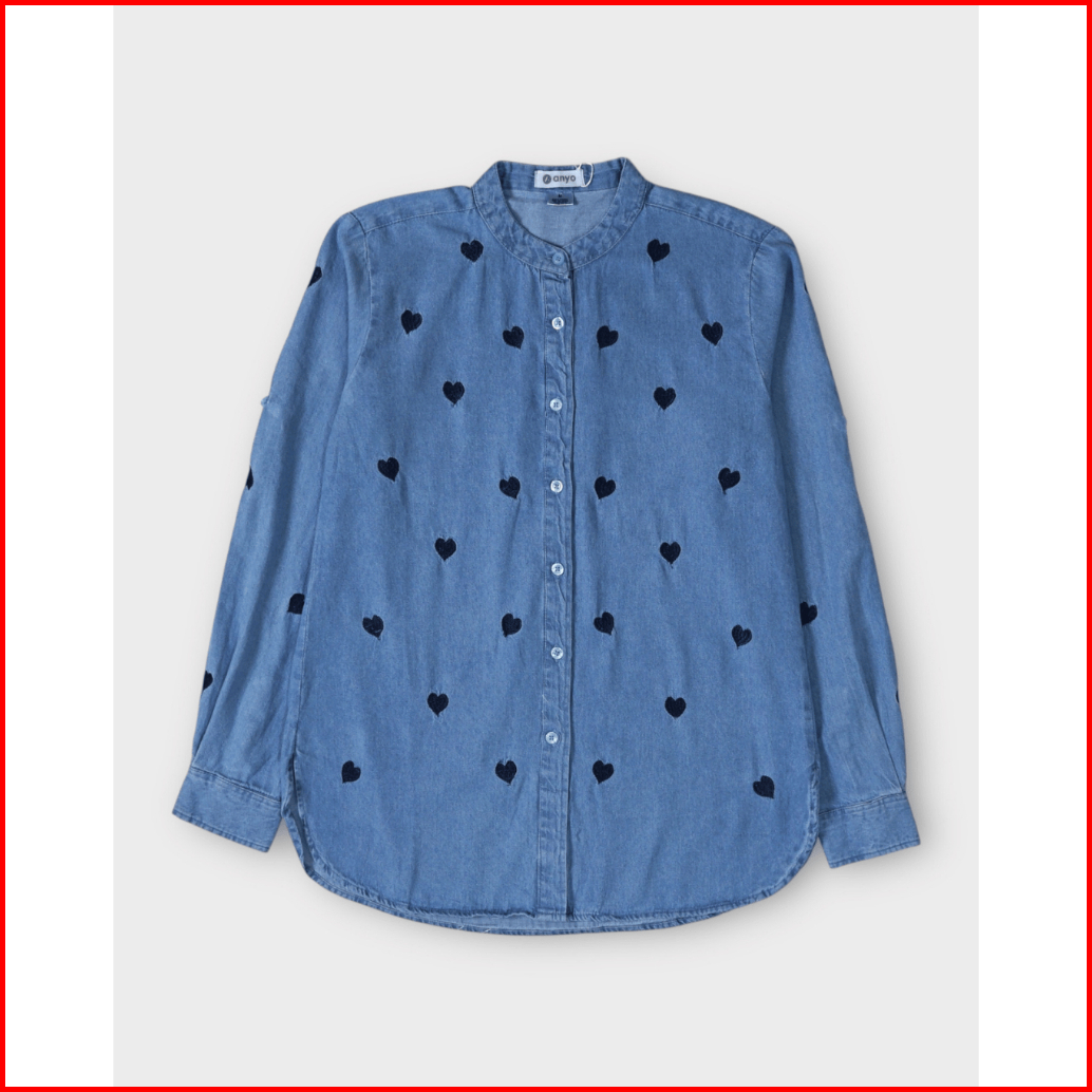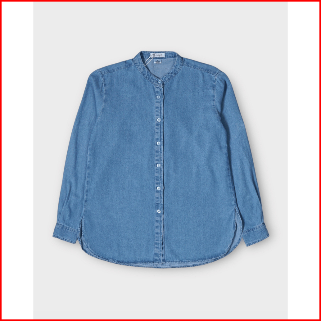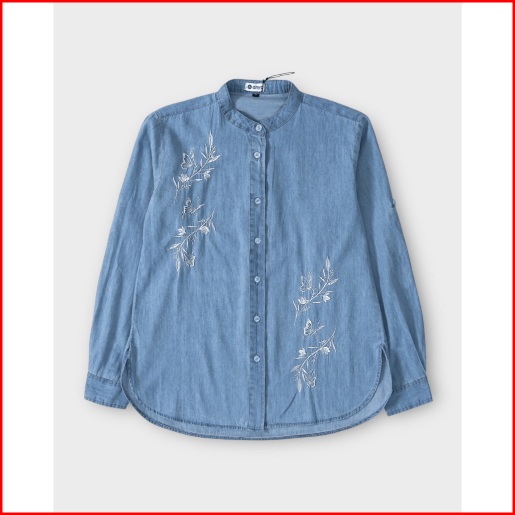Kemeja Denim Wanita Embroidery Stand Collar By Grindee