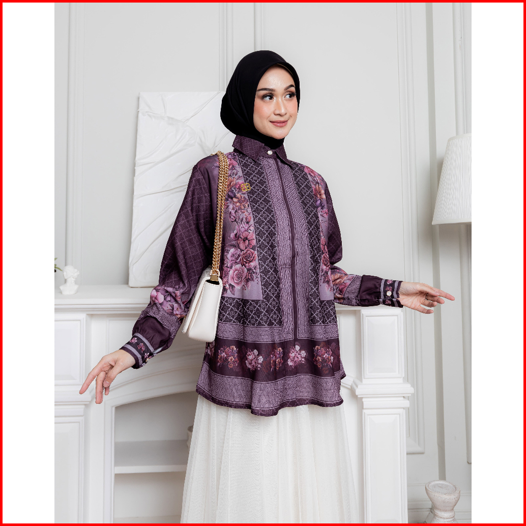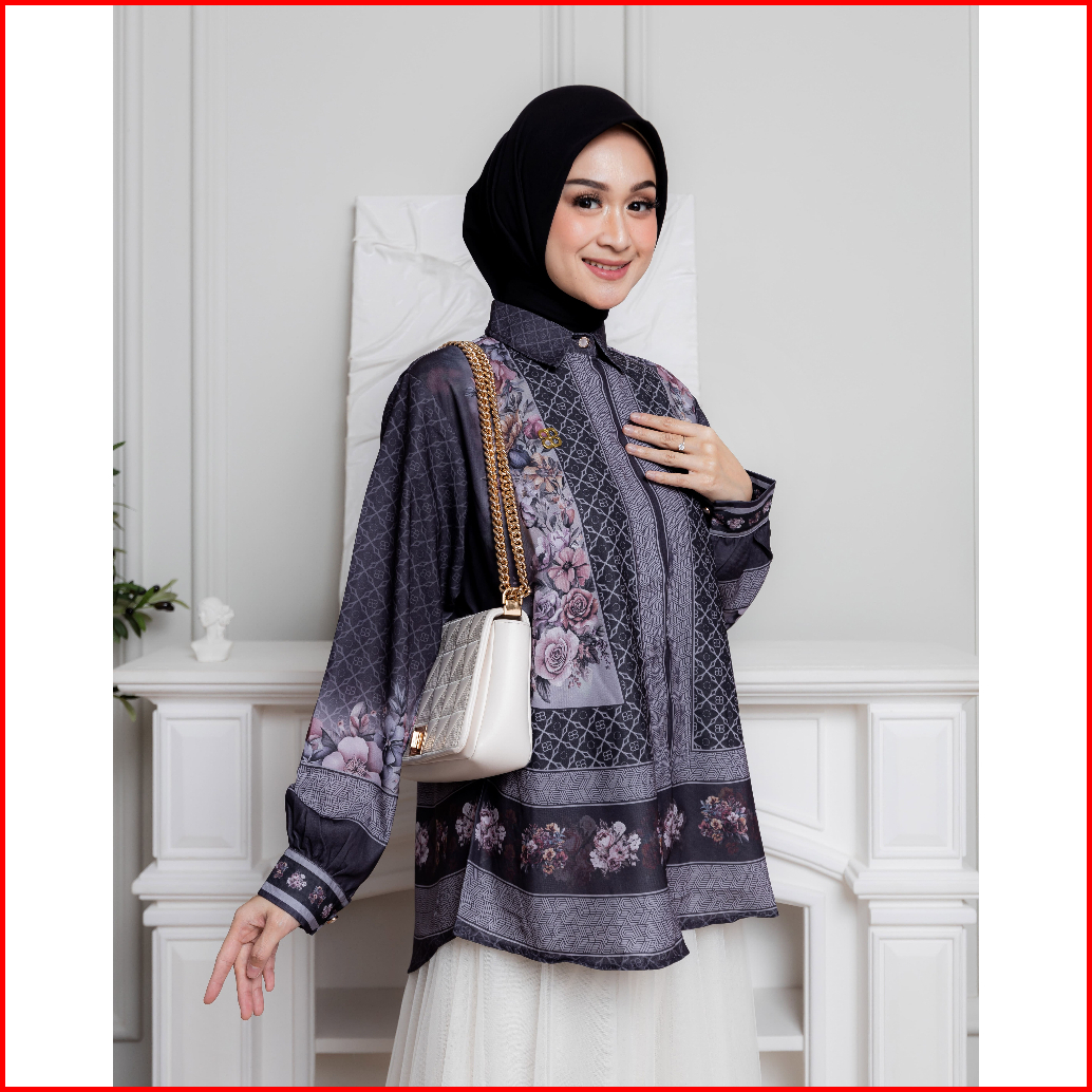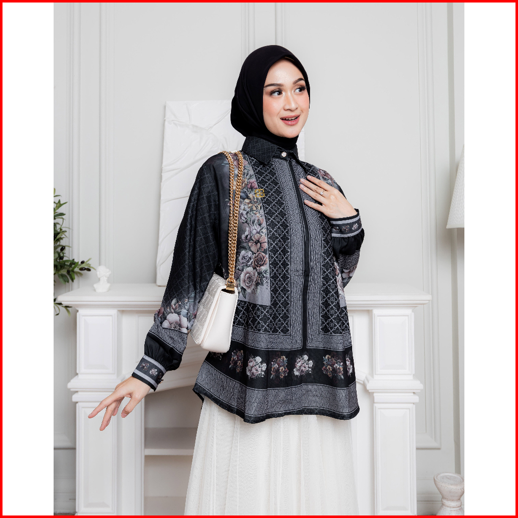 Belifi Mimoza Shirt Atasan Kemeja Wanita Blouse Floral Geometris Printed Baju Kerja Terbaru