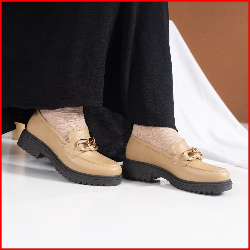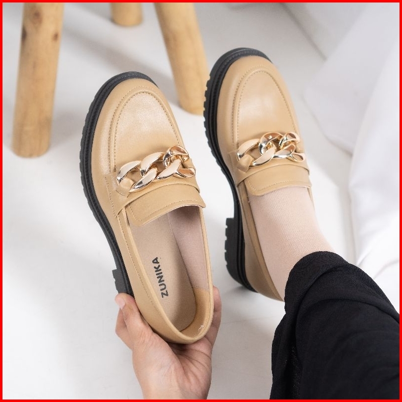 Zunika - Jolie Sepatu Docmart Loafers Mary Jane Wanita - Cream Tua