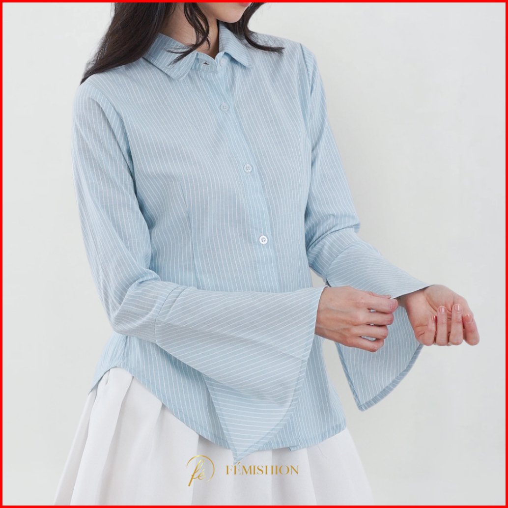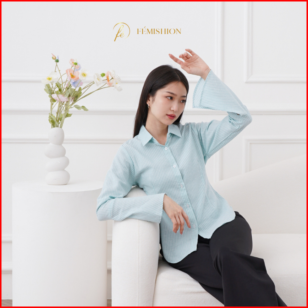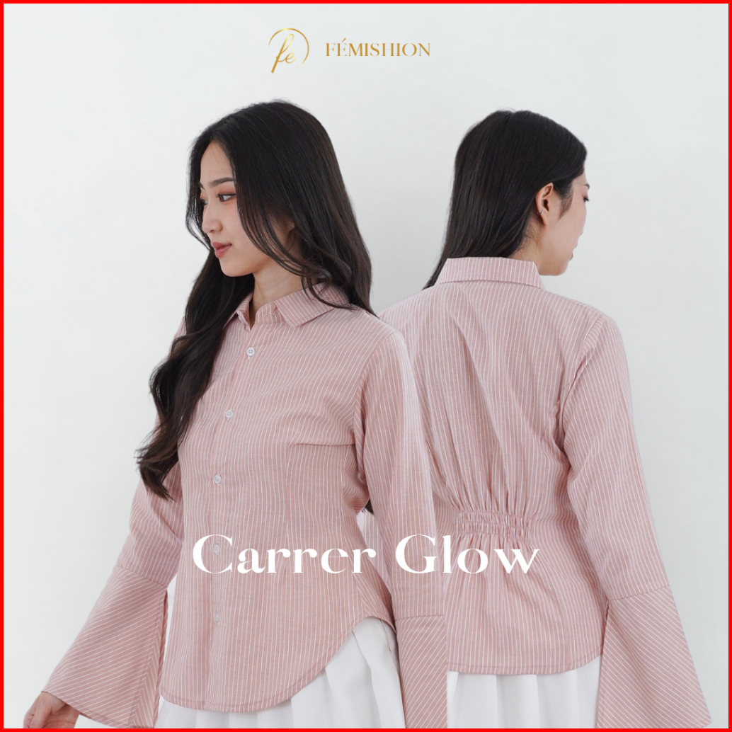 Femishion Career Glow Kemeja Kerja Atasan Wanita Salur Fitted Berkaret Press Body Pink Biru Abu Slim Fit