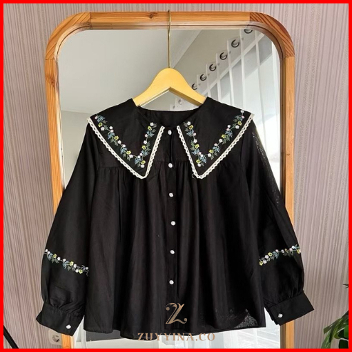 Kemeja Wanita Casual Bordir Bunga Katun Premium Model Korea Terbaru By Zuyyina.co Dyama Blouse - White Putih
