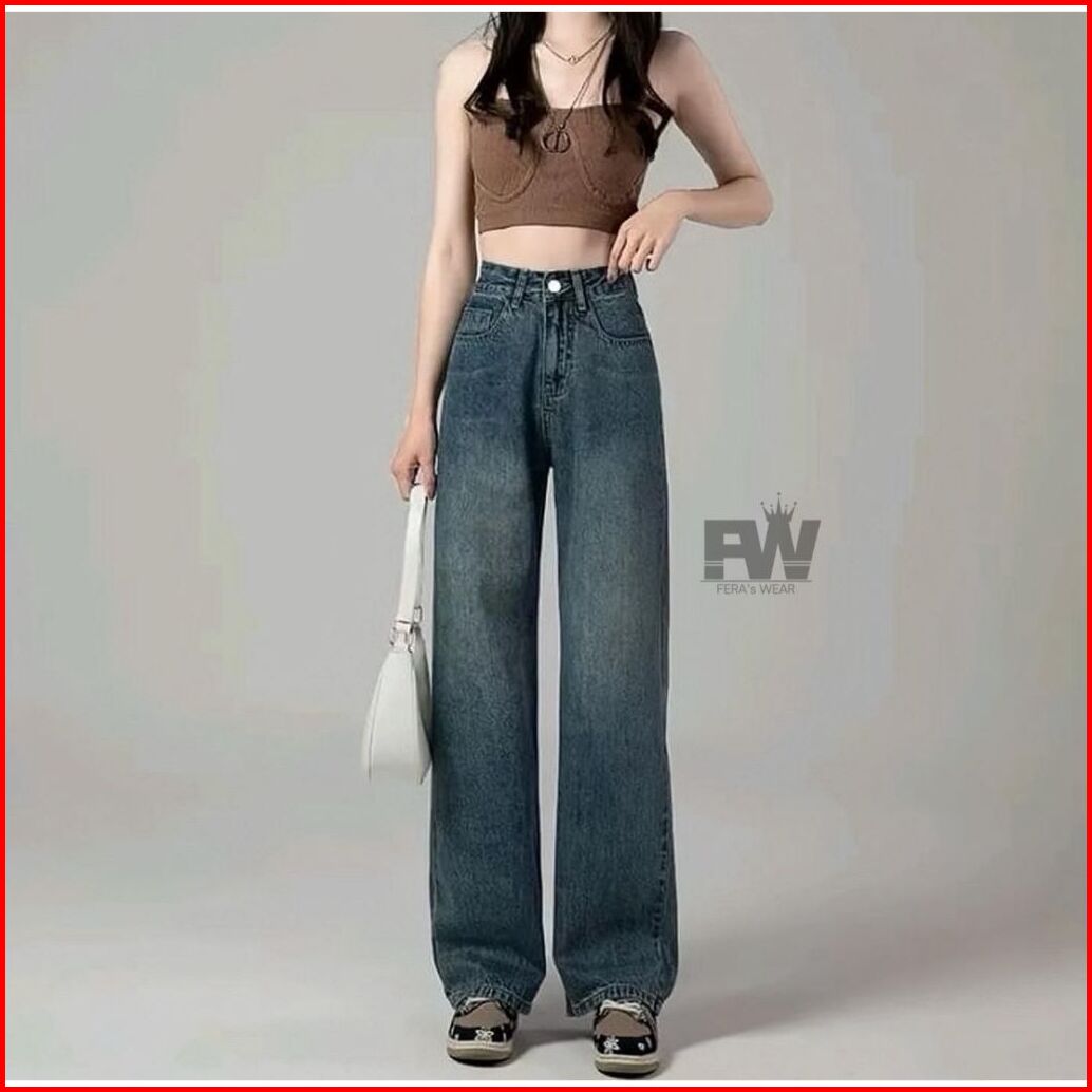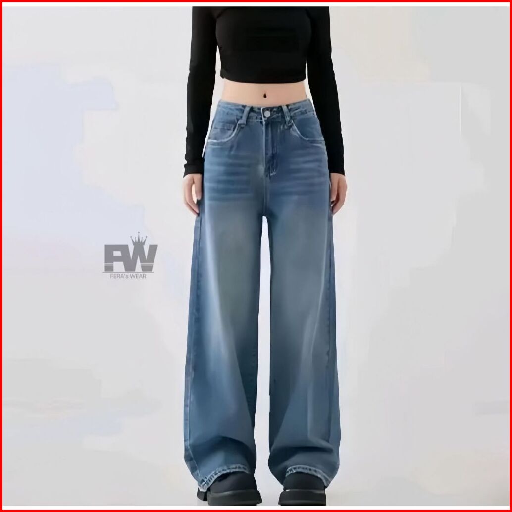 Highwaist Baggy Jeans Hangover Wanita - Celana Kulot Jeans Loosepants Gombrong Wanita Kekinian