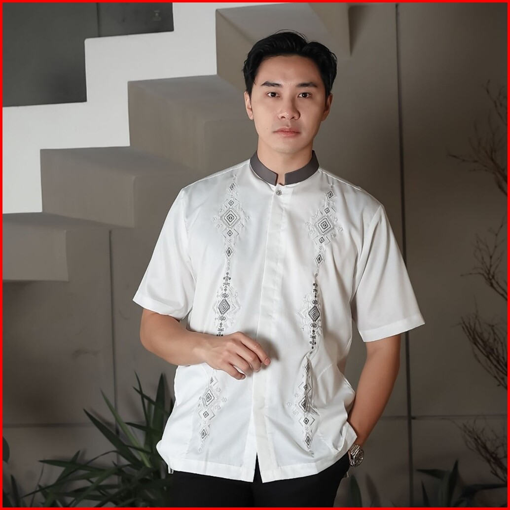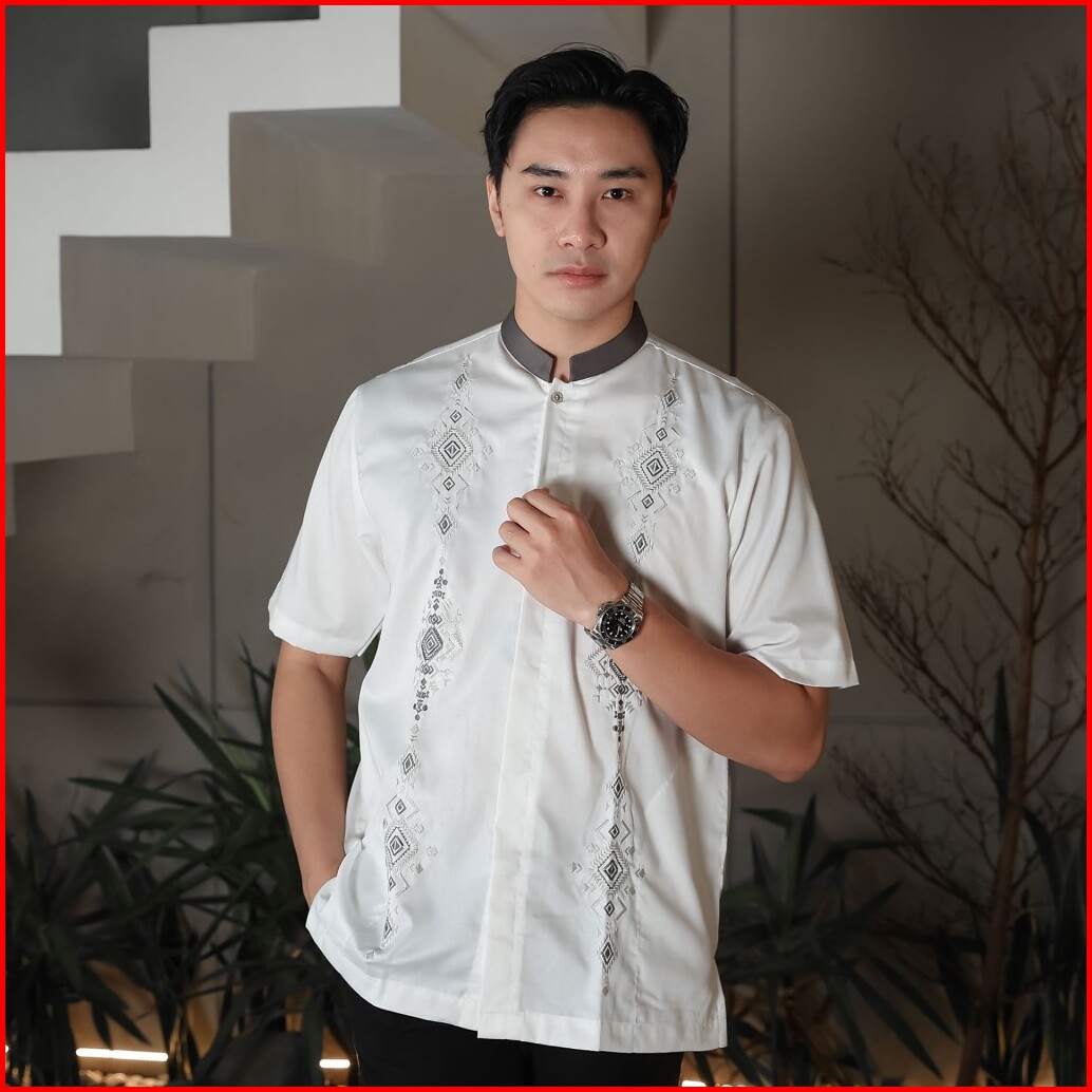 Uzma Baju Muslim Putih Tangan Pendek Pria Dewasa Bordir Koko.uzma Bw002