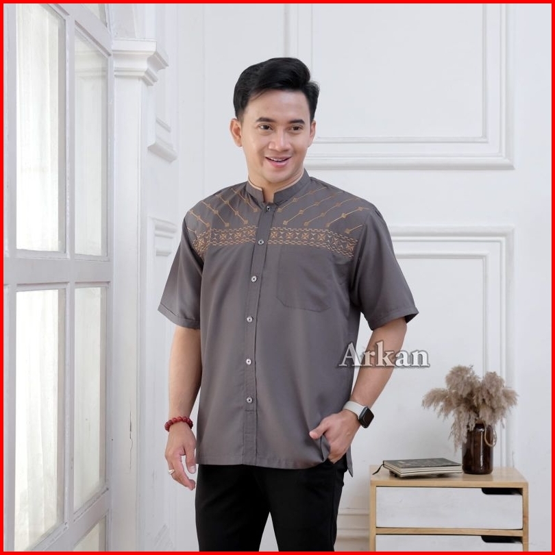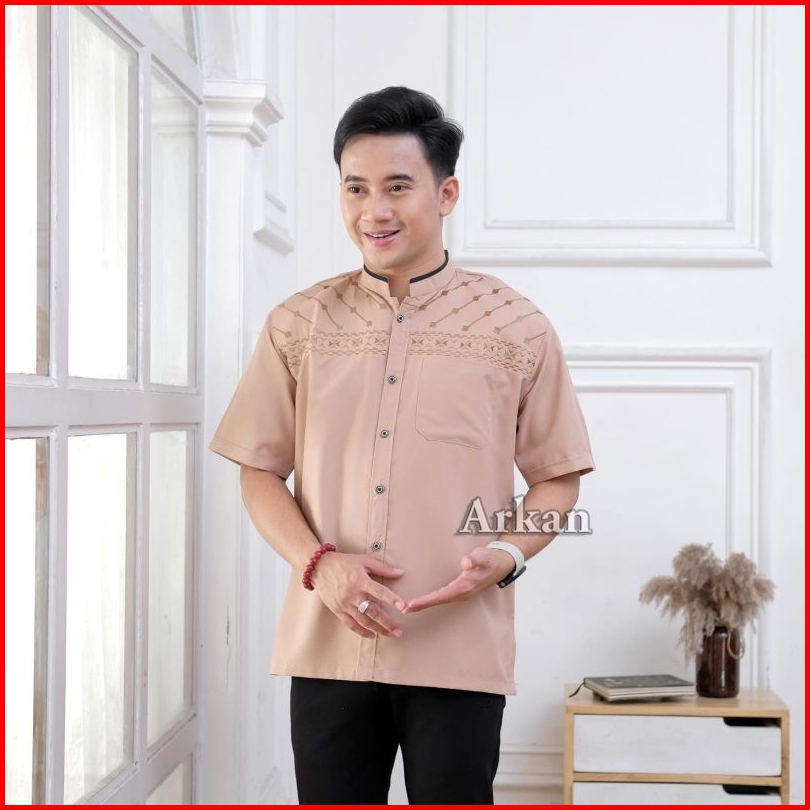Koko Bordir Lengan Pendek - Koko Arkan - Koko Polos Dewasa Premium Bahan Vito Signature - Saku Atas