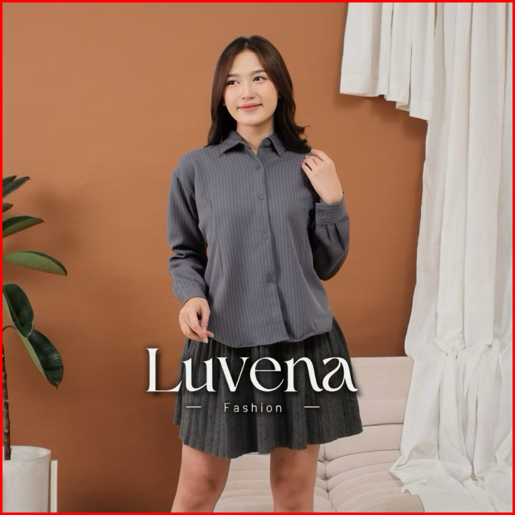 Luvena Fashion Luna Stripe Fitted Shirt - Kemeja Wanita - Atasan Wanita Stripe Salur - Kemeja Basic Lengan Panjang - Kem