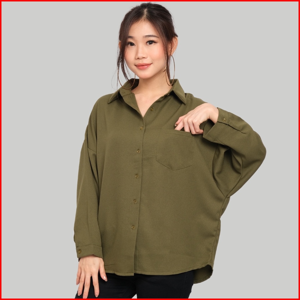 Monellina Balbi Kemeja Oversize Wanita Batwing Lengan Panjang Polos