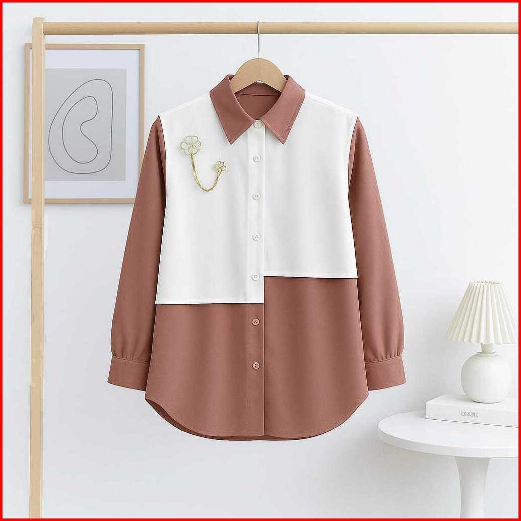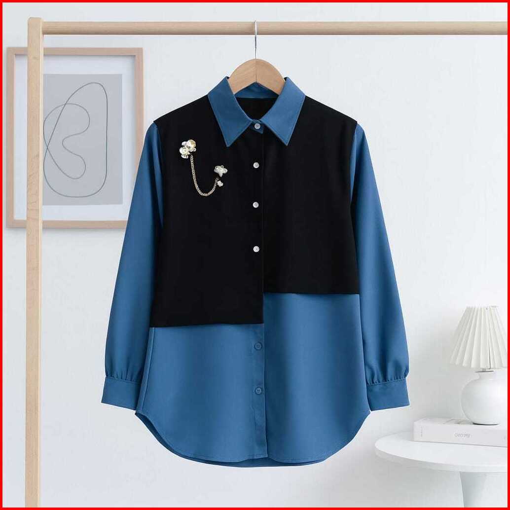 Naluna Studio Luisa Kemeja Atasan Wanita 2in1 Polo Linen
