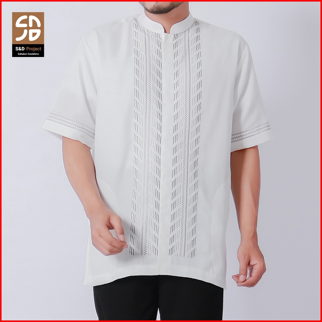 S D Project Baju Koko Muslim Seri 53 Bahan Polikatun Warna Putih Tulang Jumbo M-4xl Untuk Pria Dewasa Lengan Pendek Moti