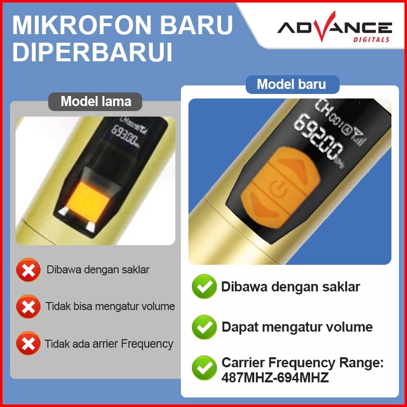 Advance New Mic 206 Microphone Karaoke Professional Wireless Mic Bisa Dicharger Karaoke
