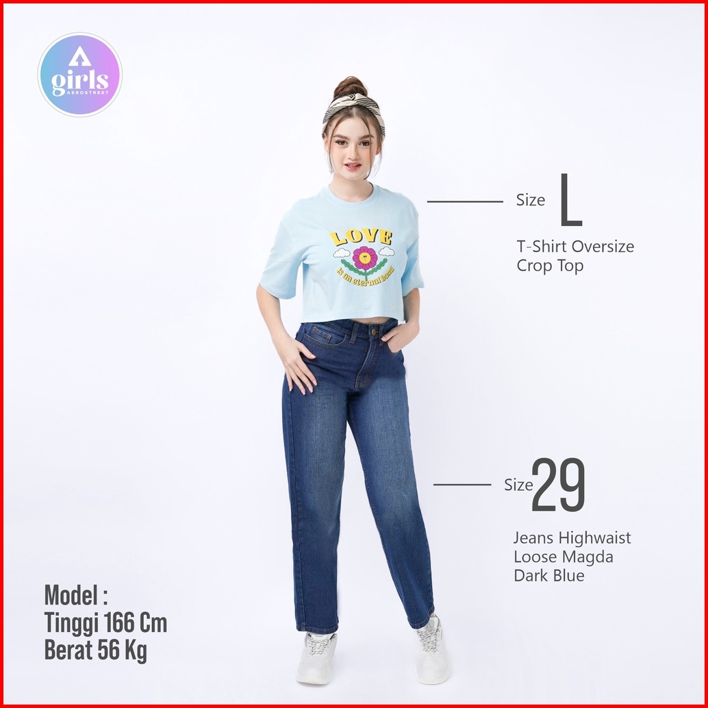 Aerostreet T Shirt Oversize Crop Top Leanna Baby Blue Kaos T-shirt Tshirt 1c001