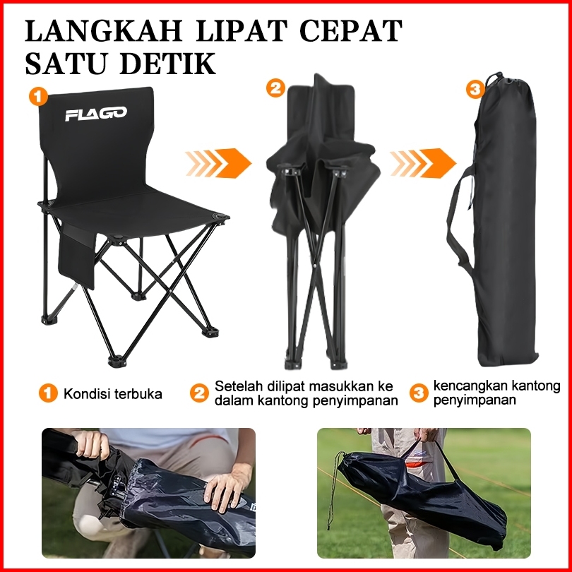 Flago Kursi Lipat Outdoor Serbaguna Kursi Lipat Camping Tebal Dan Tahan Aus Penahan Beban 200kg