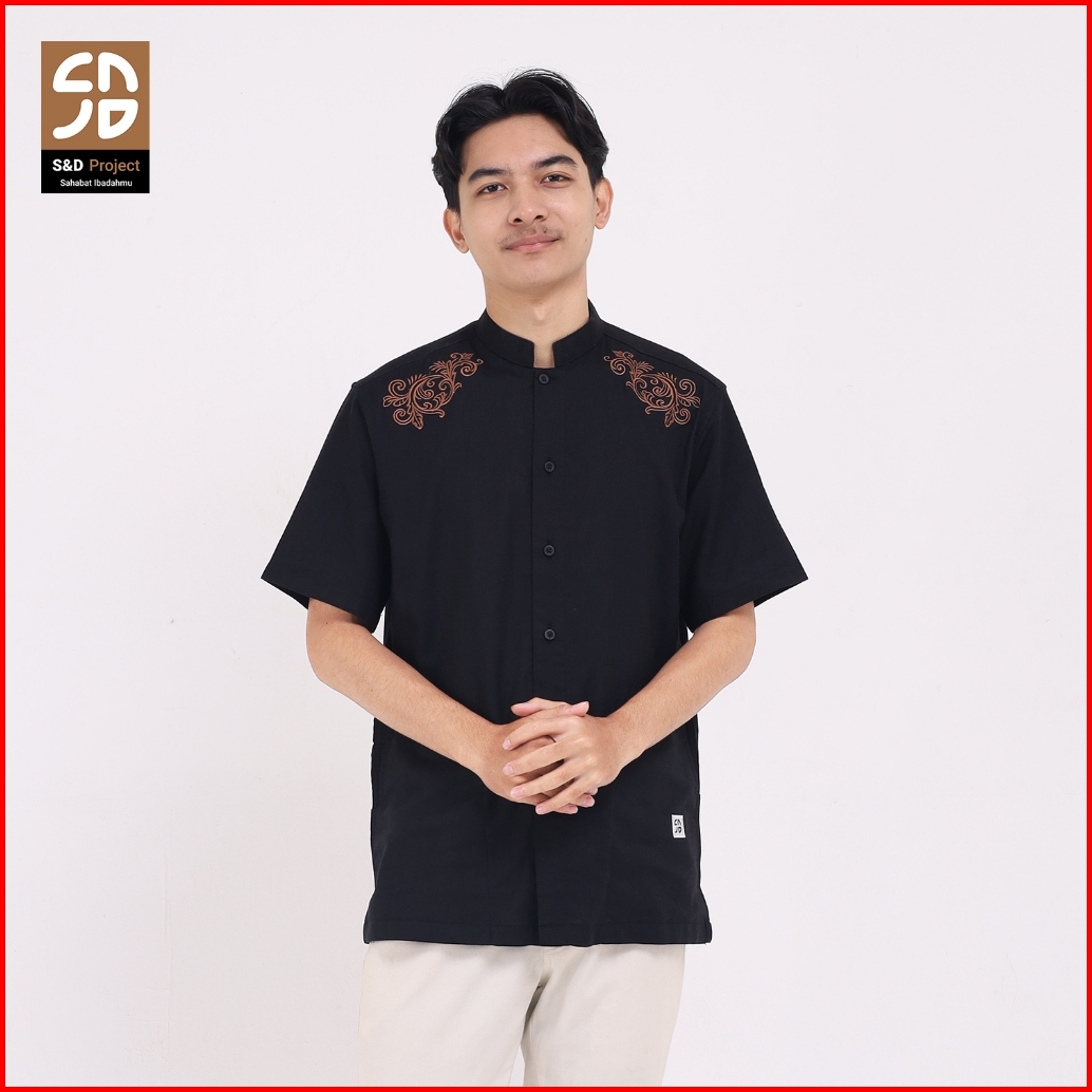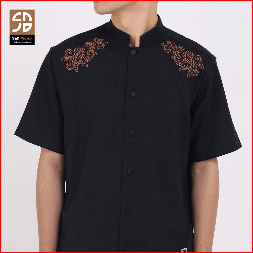 S D Project Baju Koko Muslim Kava Bahan Linen Rayon Premium Warna Hitam M-xl Untuk Pria Dewasa Lengan Pendek